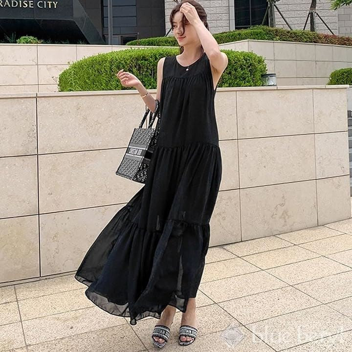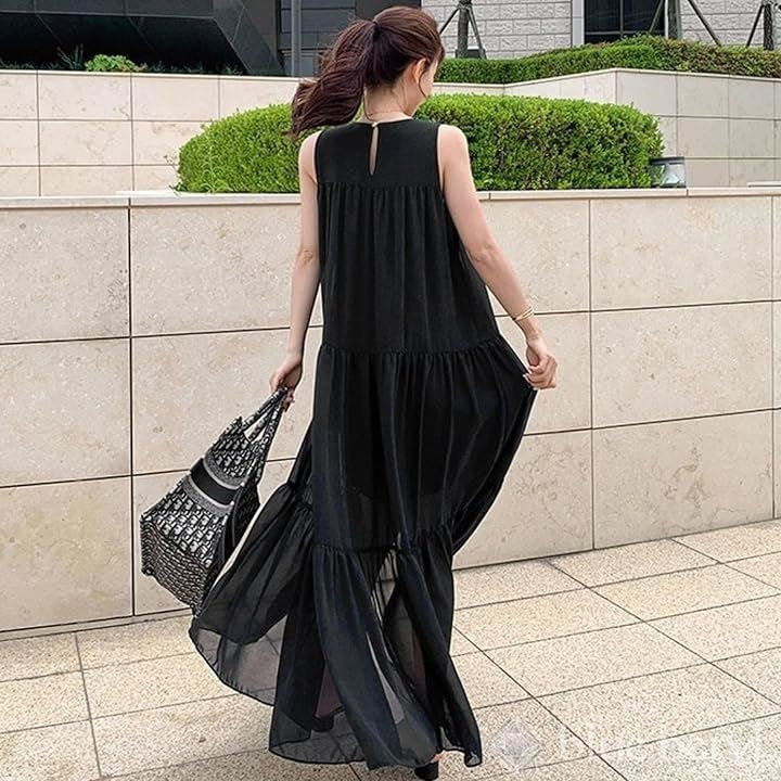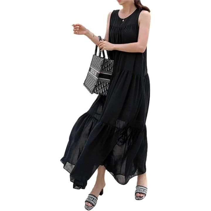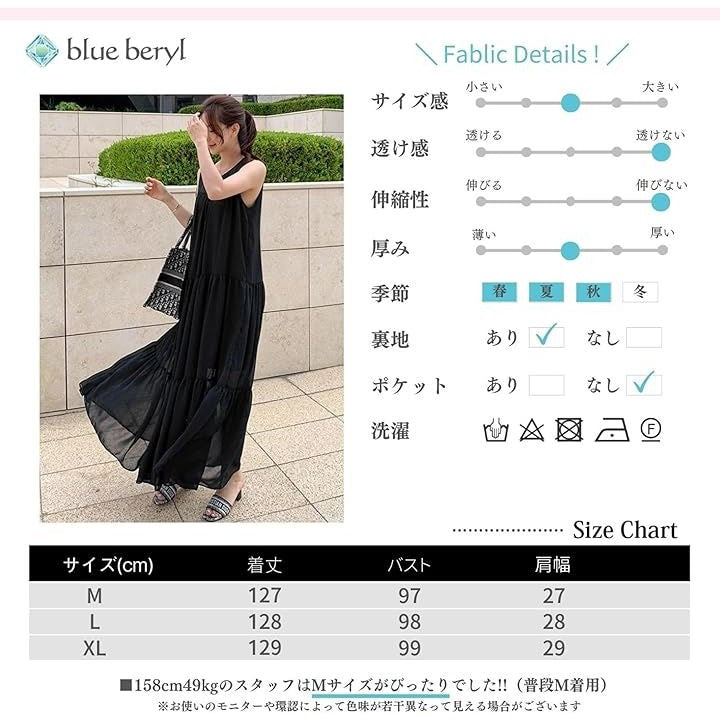 [blue beryl] ワンピース レディース ロング ティアード ノースリーブ ラウンドネック Aライン シフォン 裏地 フェミニン オフィスカジュアル スタイリッシュ コーディネイト コーディネート 雰囲気 裏地あり シフォン素材 BB045 |