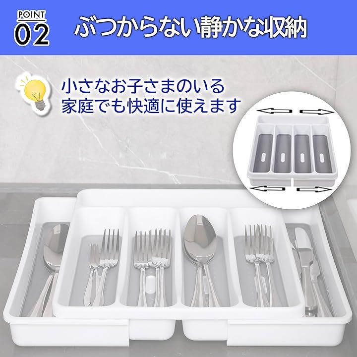 カトラリーケース 収納トレイ 伸縮式 引き出し 仕切り カトラリー収納 整理トレー 食器収納 カトラリートレー キッチン オフィス