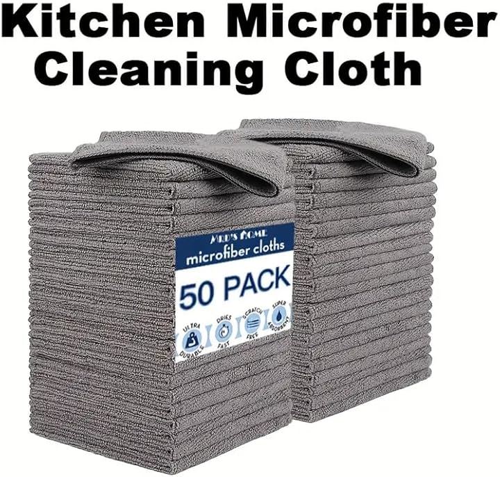 お得な50枚セットマイクロファイバー製のお掃除クロス 食器用クロス 多機能お掃除タオル 家庭用雑巾 キッチン・バスルーム用お掃除タオル 耐久性のある吸収タオル しみや油汚れを簡単に取り除くお掃除用品 お掃除ガジェット