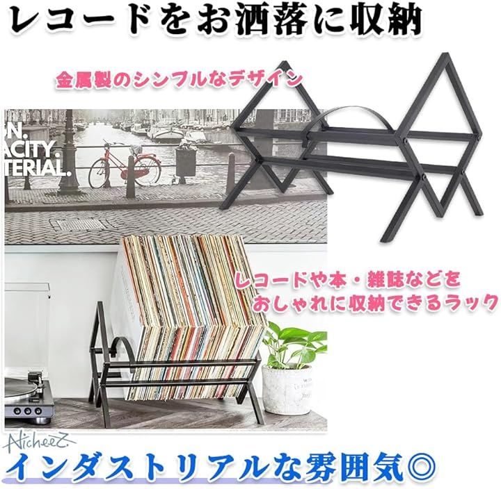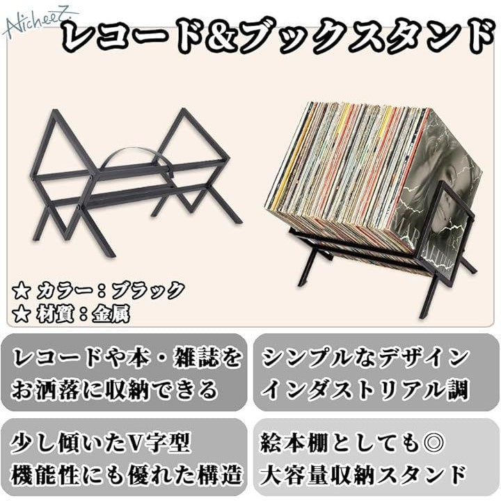 レコード LP ラック マガジン ブック スタンド 金属製 スチール シェルフ 床置き 絵本棚