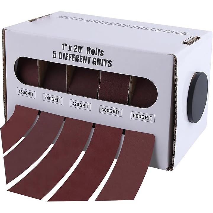 箱入りマルチロール研磨ロール詰め合わせ 紙やすりロール サンドペーパーロール 5グリット研磨紙セット エメリーロール ロールサンドペーパー ボックス入り研磨ロール各種 サンドペーパー・ボックス入り マルチ研磨ロール 引き出し可能なサンディングベルト