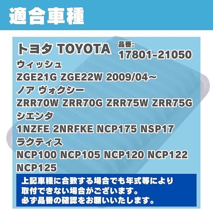 互換品 互換品 エアクリーナー エアフィルター ‎トヨタ ウィッシュ ヴォクシー シエンタ ラクティス 用 17801-21050 ZGE21G ZGE22W