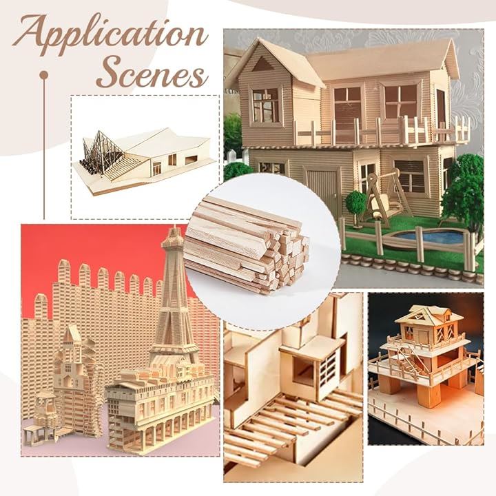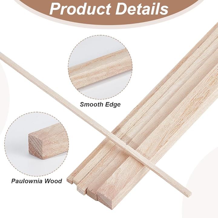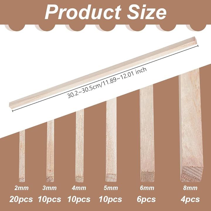 60本6サイズ 角棒 角材 長さ約302mm~305mm 辺の長さ2mm~8mm 桐木 木材 木棒 スティック棒 クラフト モデリング ハンドメイド ホビー用 手作り DIY工具 手芸用 DIYモデル アクセサリー 木の色