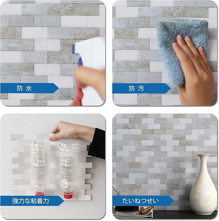 キッチンや洗面台 大理石調タイルシール、防水 洗面所タイルシート 壁パネル モザイクタイル
