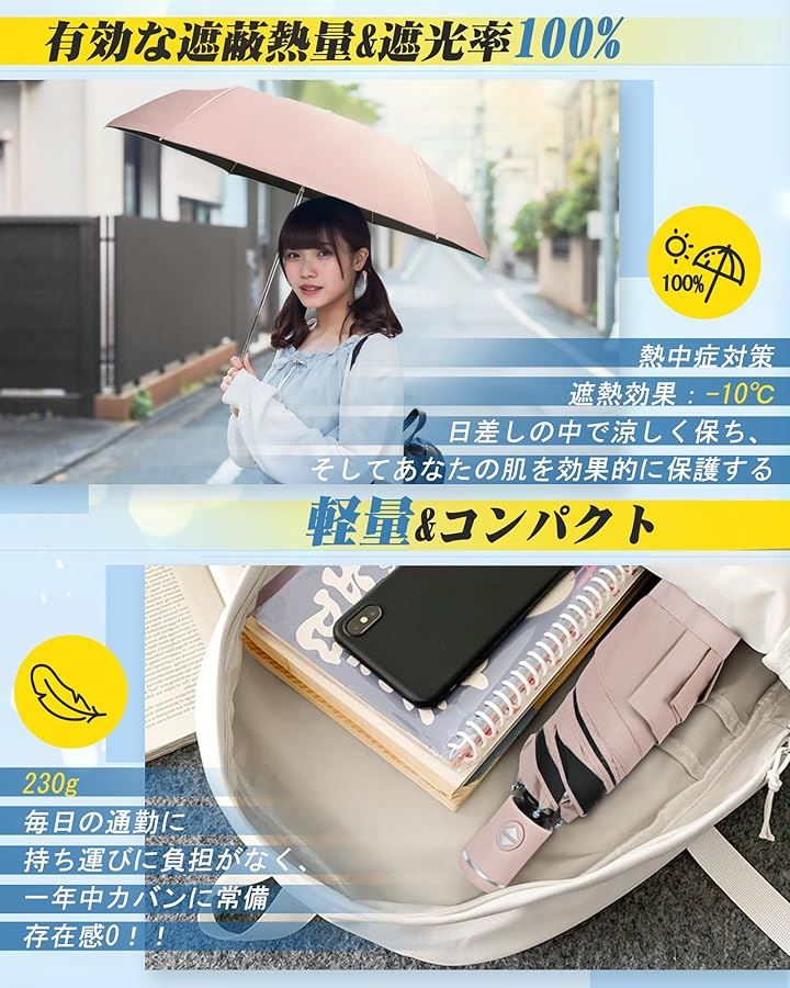 「超軽量携帯日傘」ワンタッチ自動開閉日傘は、優れた機能とスタイリッシュなデザインが特長です。