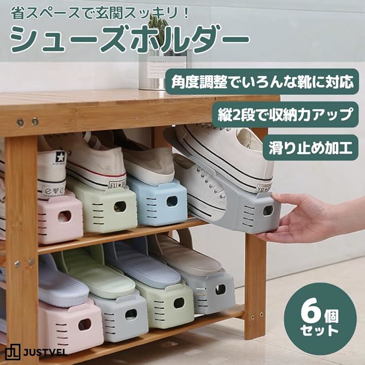 靴 収納 シューズホルダー 靴収納 靴箱 下駄箱 6個セット スリム シューズ収納 省スペース シューズラック 靴ホルダー