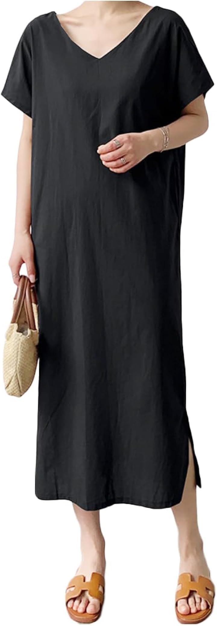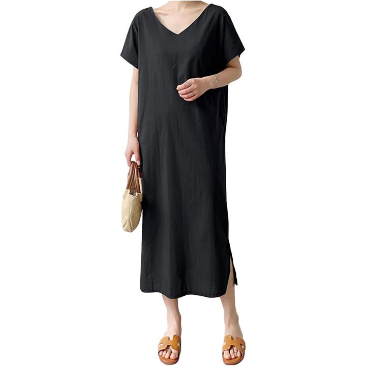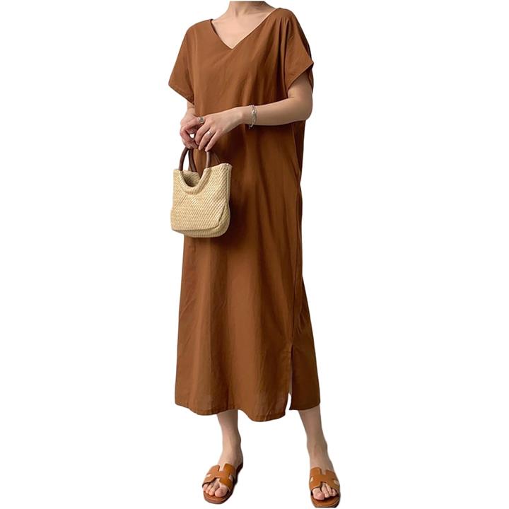 vネックワンピース 半袖 チュニックワンピース レディース 夏 リゾート