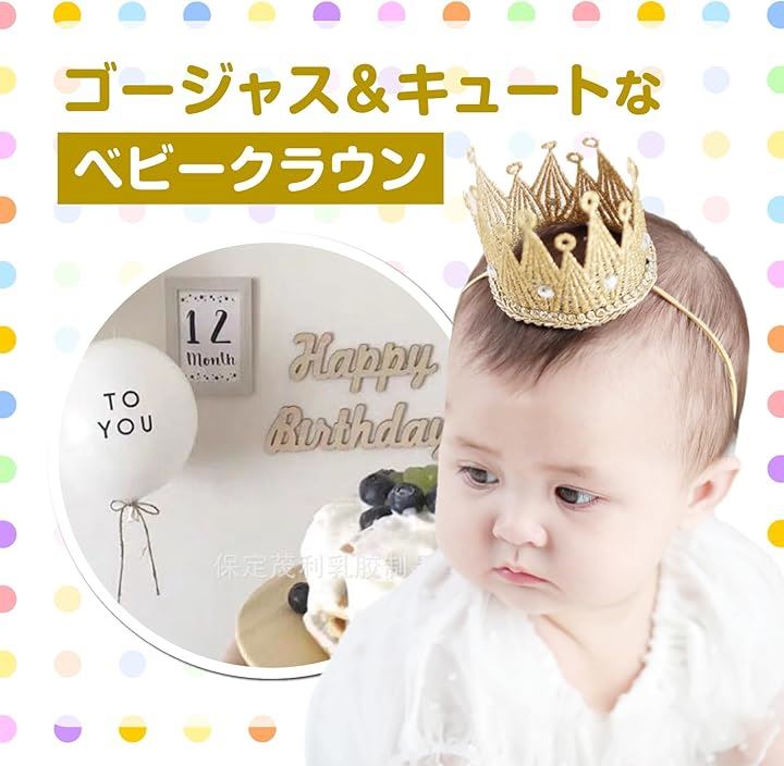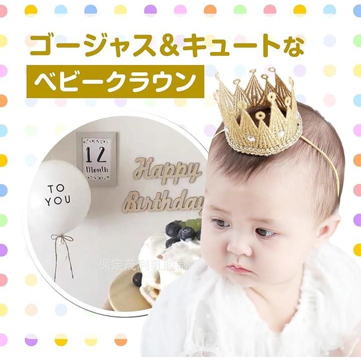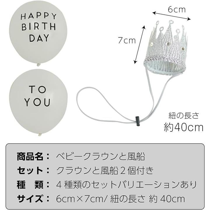 ベビークラウン 王冠 風船2個付き キッズ ゴールド シルバー 出産祝い 100日祝い ハーフバースデー 誕生日 記念写真 愛おしいペットにも。