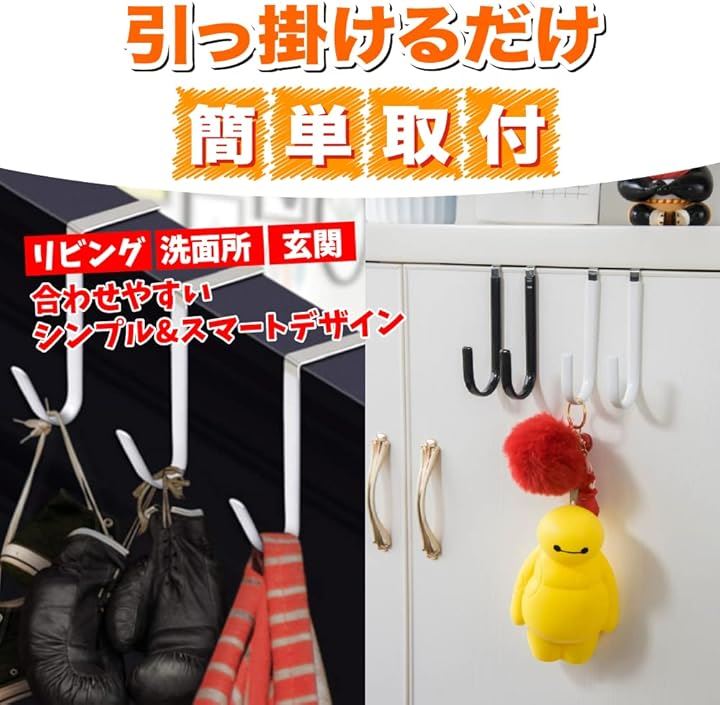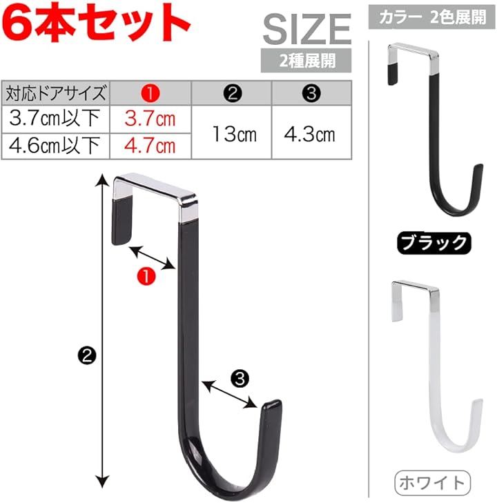 AllBright ドアハンガー ドアフック 6個 扉 小物掛け ドア掛け かばん掛け 省スペース ロング