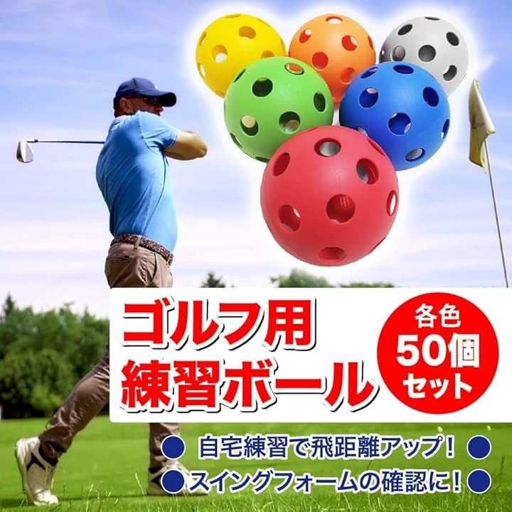 AllBright 練習用ゴルフボール スイング フォーム 50個入 穴あき 練習球 室内 トレーニング
