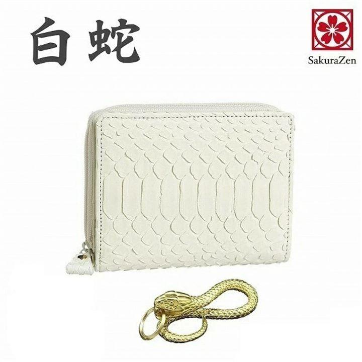 金運財布 幸運のホワイト パイソン メンズ エキゾチック レザーを使用した白蛇 蛇革財布/熟練革職人のハンドメイド品 日本製 二つ折りラウンド