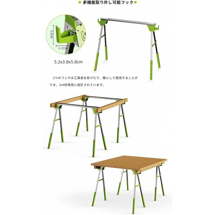 互換品 ソーホース 作業台 木工作業台 完成品 テーブル 2台1組 高さ調節6段階可能 ソーホースセット 2台入 折りたたみ DIY 木材 のこぎり台 高さ72.6~90cm 約 日曜大工 裁断 切断 簡易作業台 2x4用 高耐久 プロベンチソー 作業馬