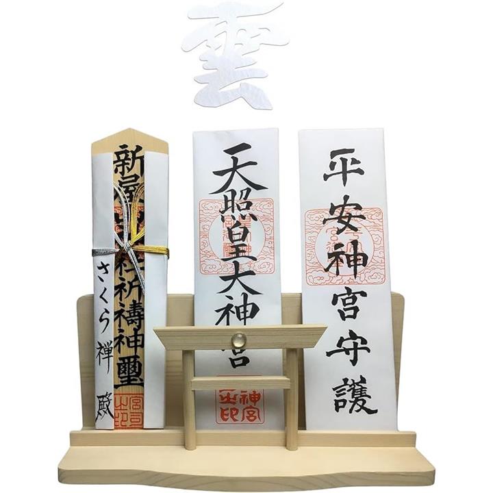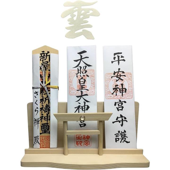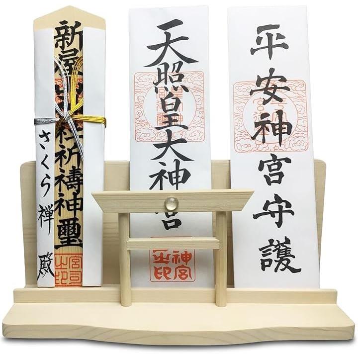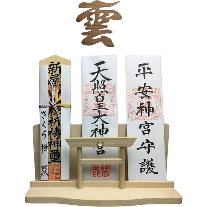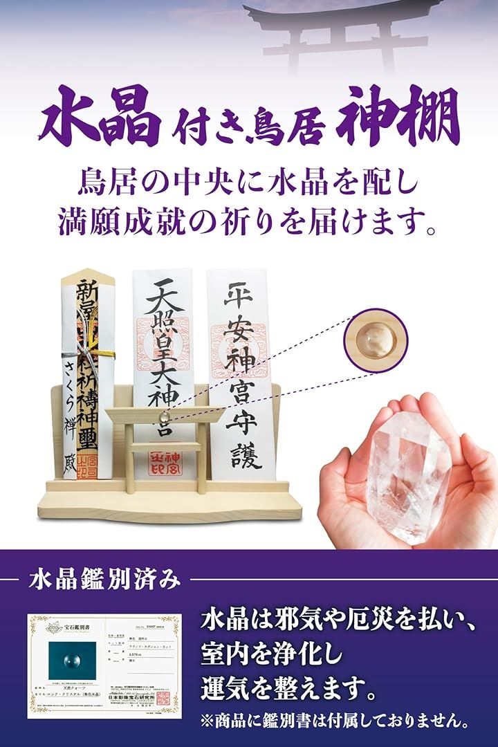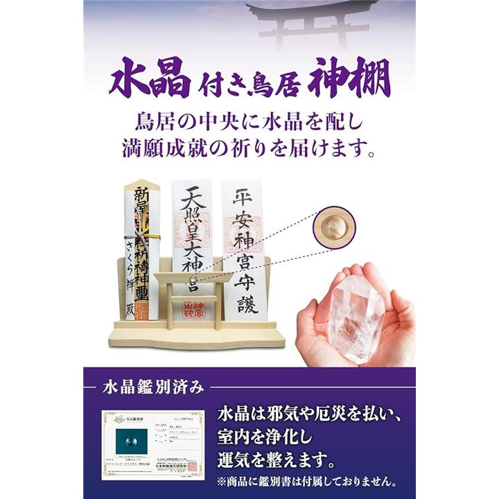 神棚 神明 水晶 大鳥居 三社 白松 壁掛け お札立て モダン 棚板 神具
