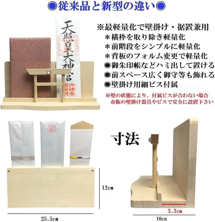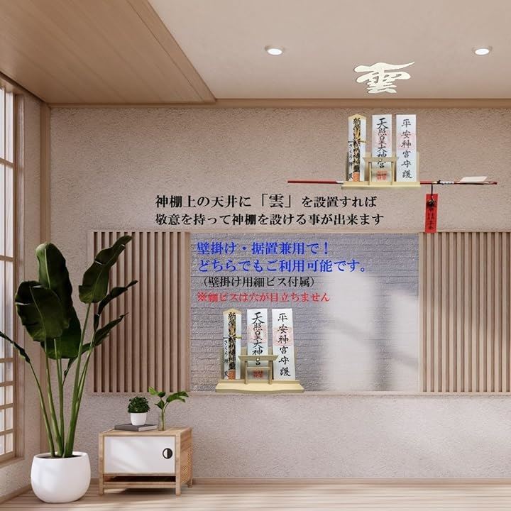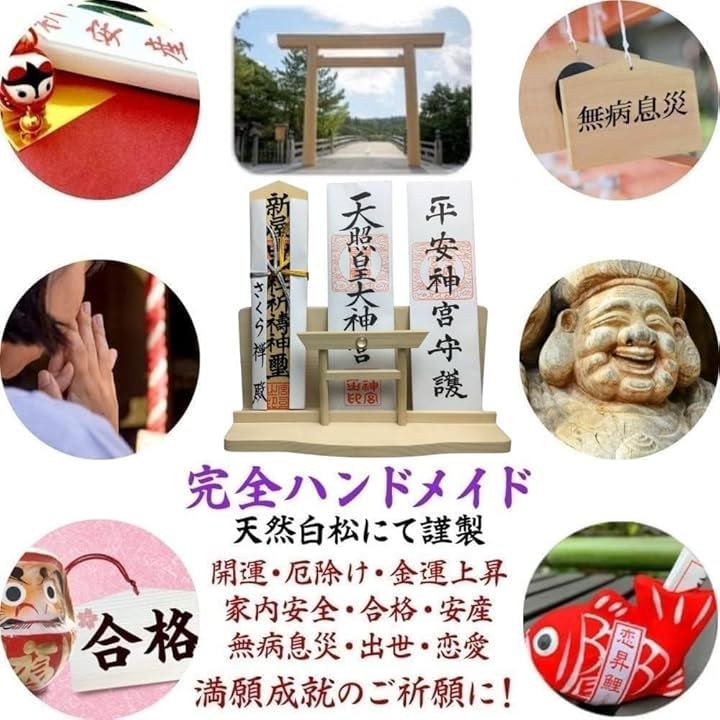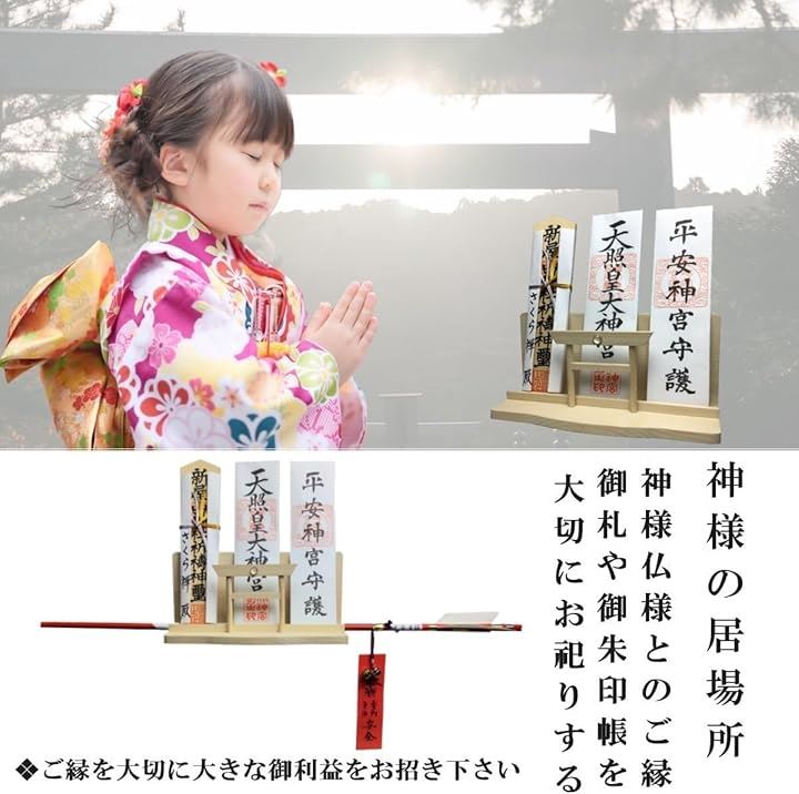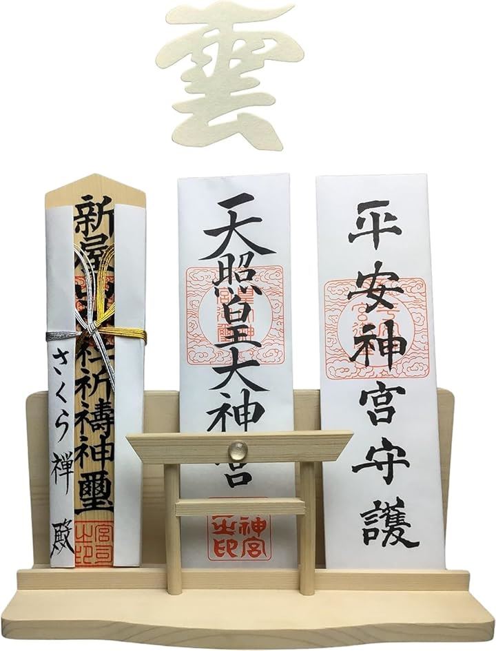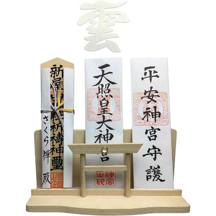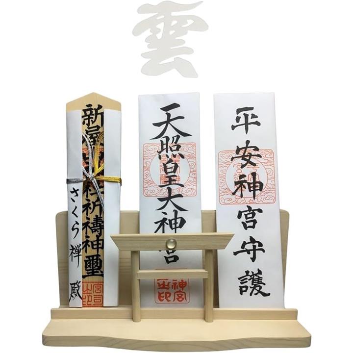 神棚 神明 水晶 大鳥居 三社 白松 壁掛け お札立て モダン 棚板 神具