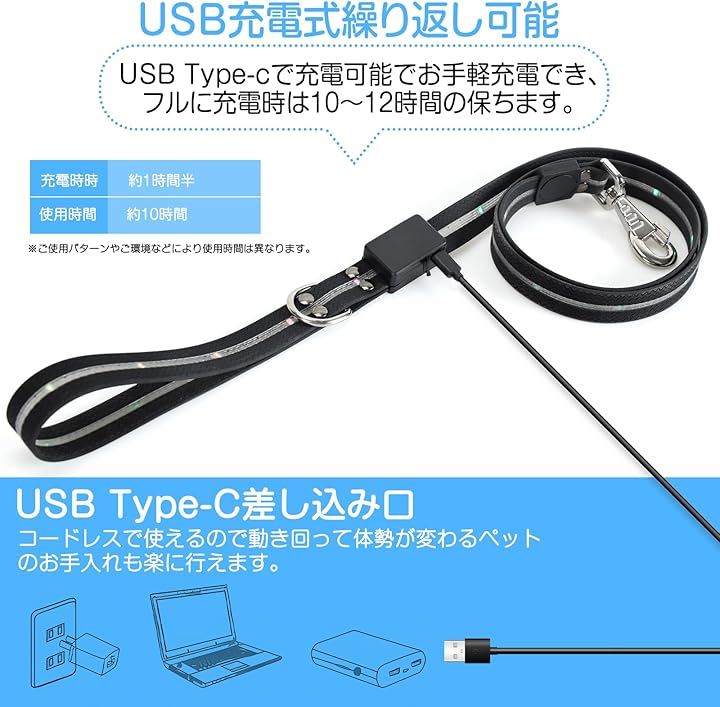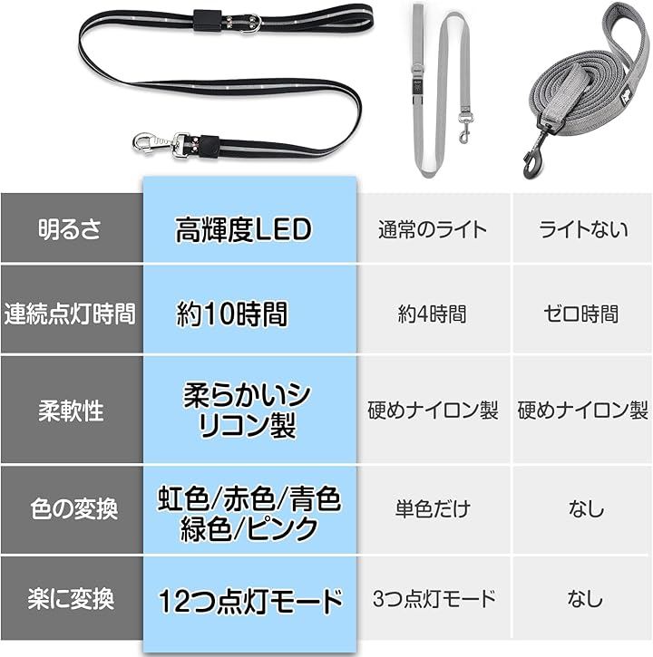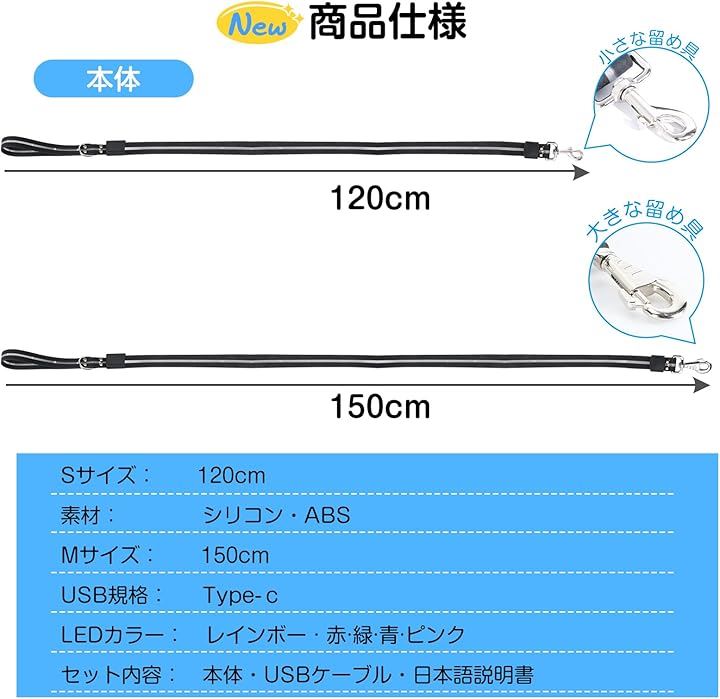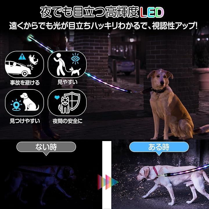 犬 リード 光るリード 12つ発光モード 散歩 ライト 多色発光 ペット USB充電式 高い視認性 安全対策 猫 小型・中型・