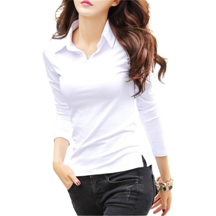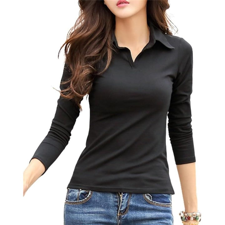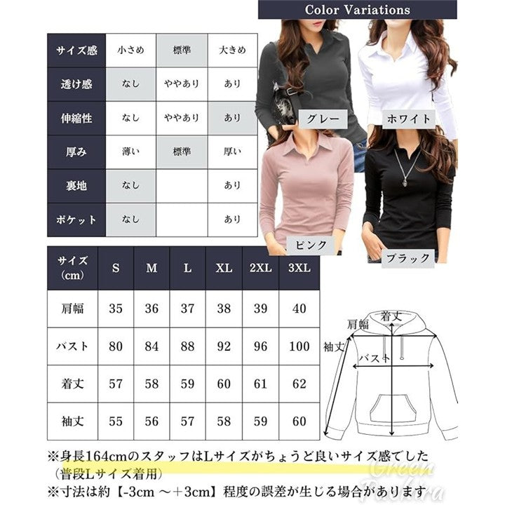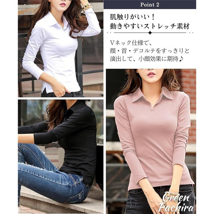[グリーンパキラ] 襟付き vネック ポロシャツ レディース トップス スキッパーシャツ スリムフィット tシャツ カットソー 無地 ストレッチ 伸縮 タイト フィット 綿 コットン シンプル |