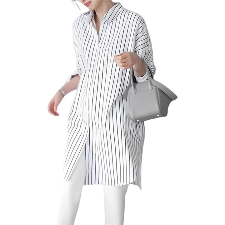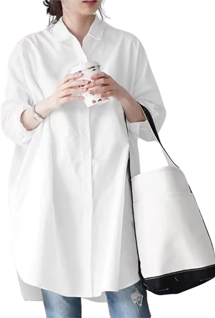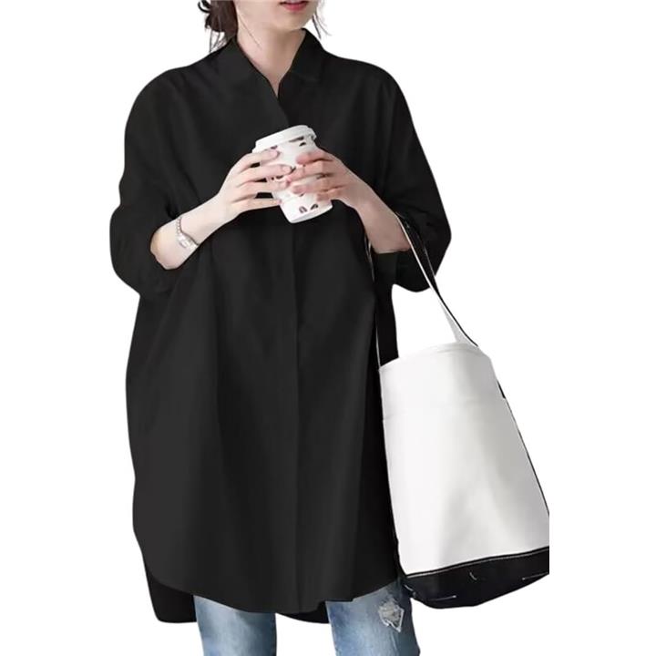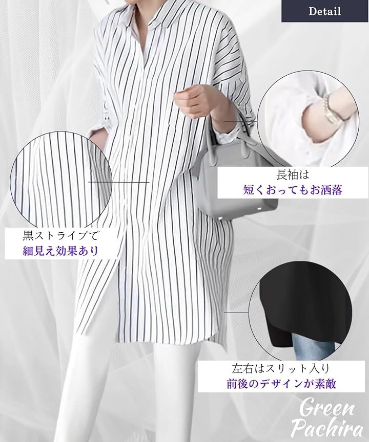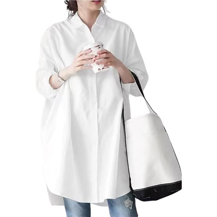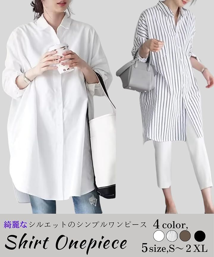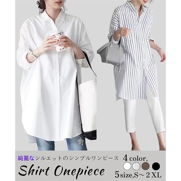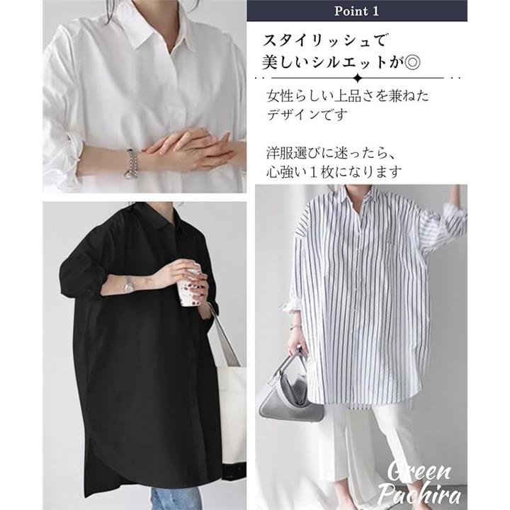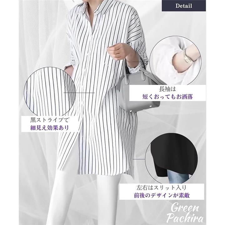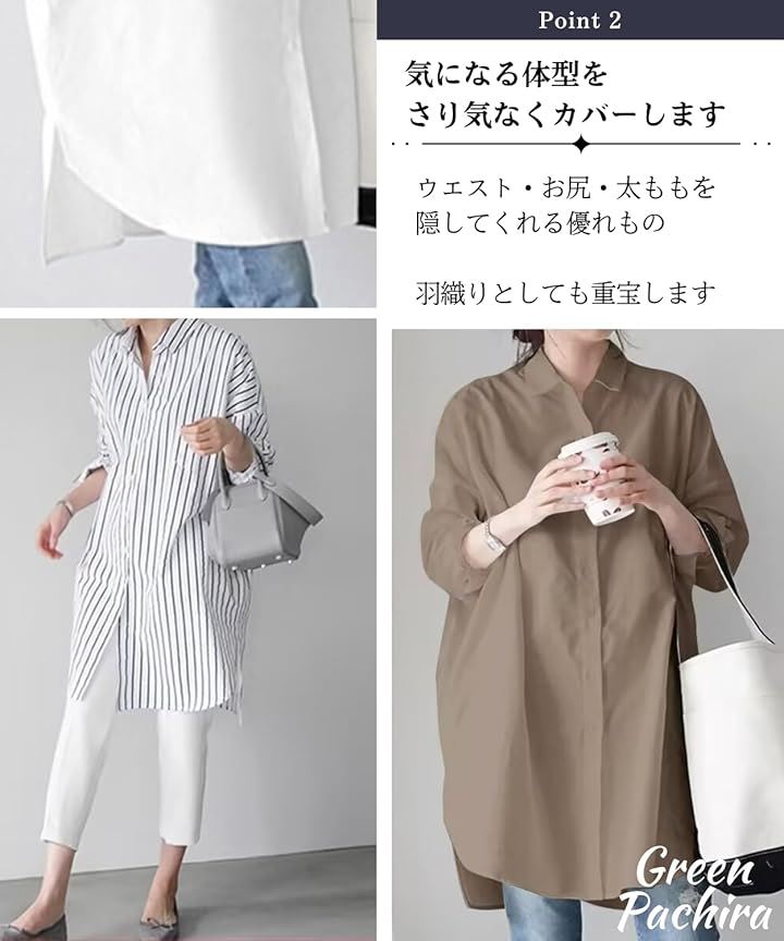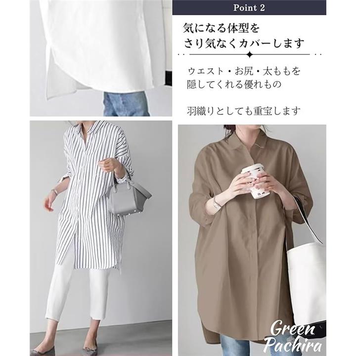 [グリーンパキラ] おしゃれ シャツワンピース 襟付 シャツ トップス 長袖 レディース 体型カバー チュニック きれいめ インナー 重ね着 着回し |