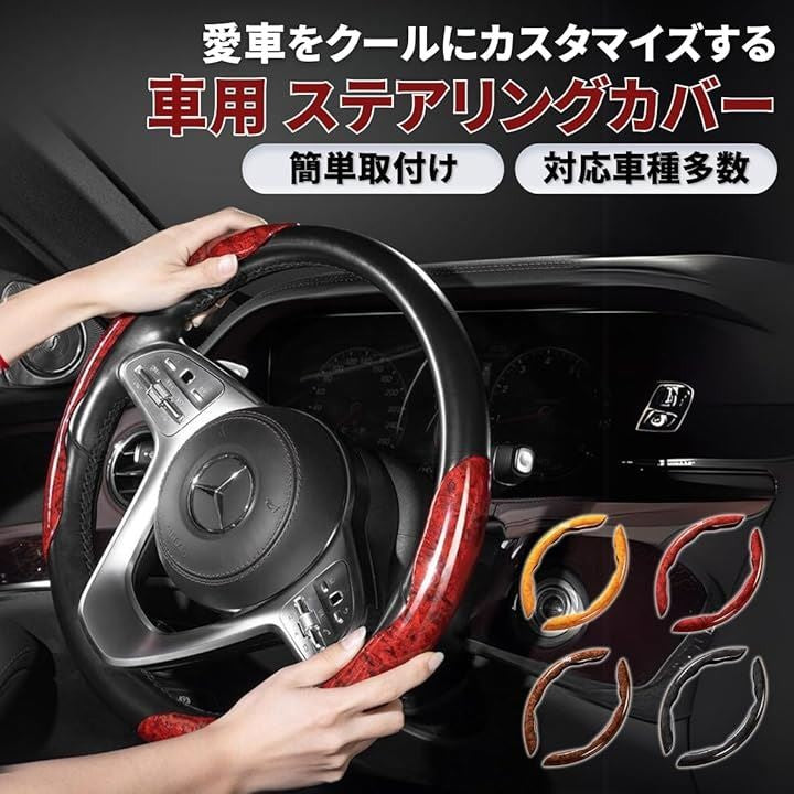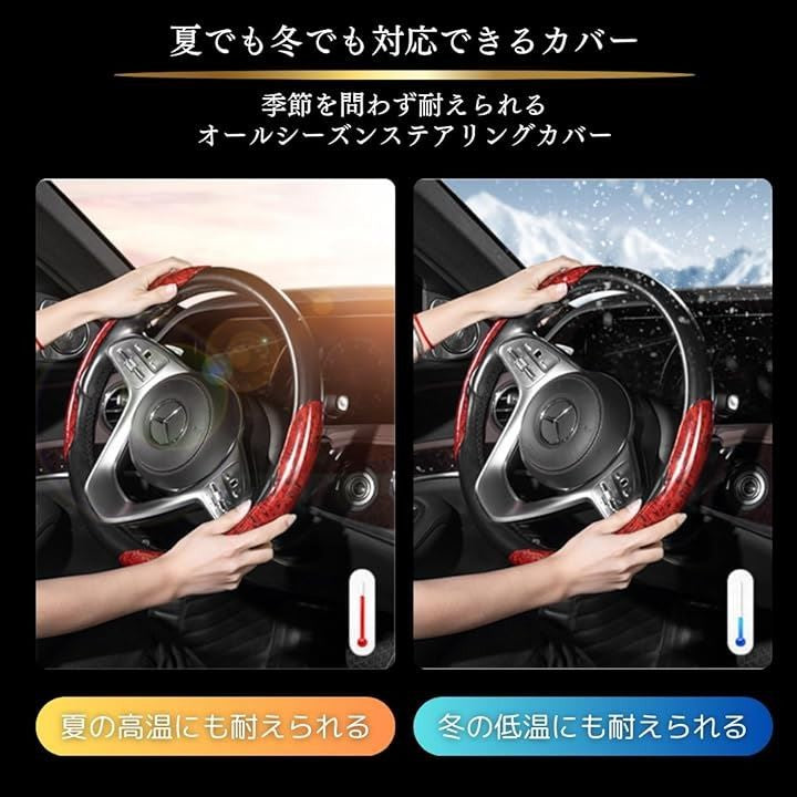 ハンドルカバー ステアリングカバー 車用 汎用 軽 普通車 O型 D型 簡単取り付け カーボンファイバー 握りやすい 滑り防止 内装パーツ