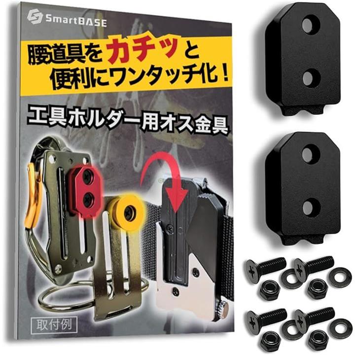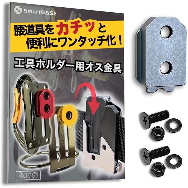 「互換品」[SmartBASE] オス金具 セフティ金具 ワンタッチ工具ホルダー用「軽量・高強度なアルミ合金製+アルマイト仕上げ」「固定式」取付金具 スリムホルダー対応 セフティホルダー |