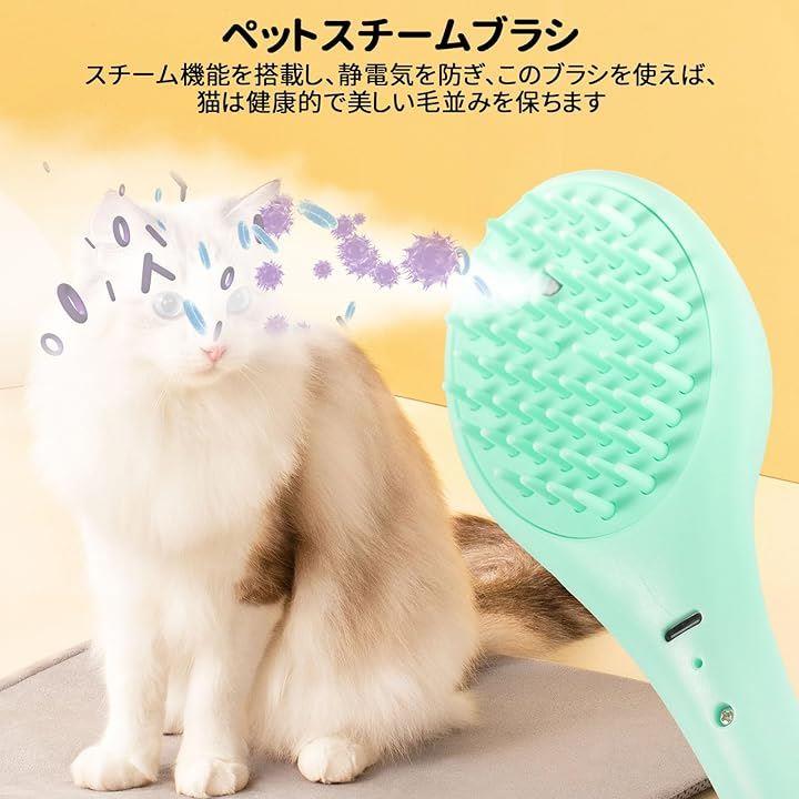 猫用スチームブラシ クリーニング マッサージコーム ナノスプレー 猫用コーム セルフクリーニング 猫ブラシ 脱毛用 ペットスチームブラシ ペットの毛クリーニングブラシ 丈夫で耐久性のある快適なハンドル 猫と犬に最適