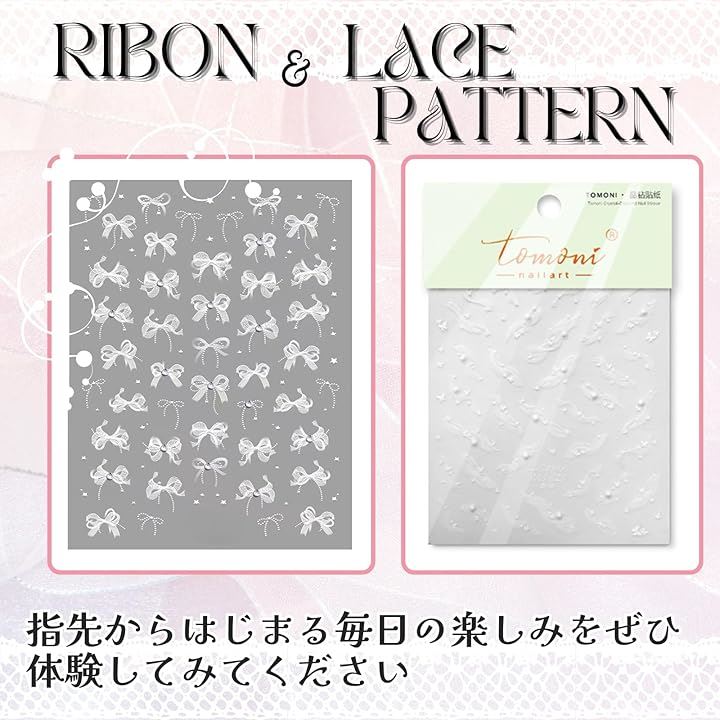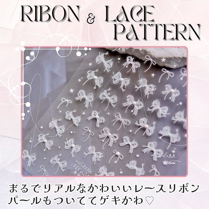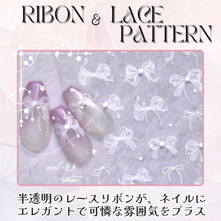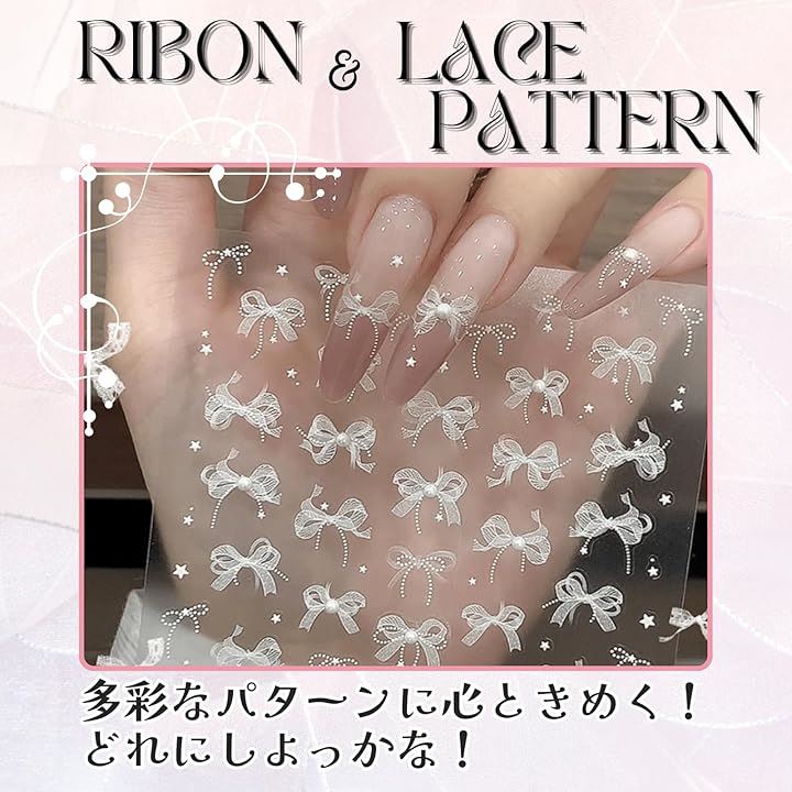 ネイルシール リボン レース パール 張るだけ ネイルパーツ ネイルチップ ネイルアート ジェルネイルシール デコパーツ 蝶々 細リボン セルフネイル