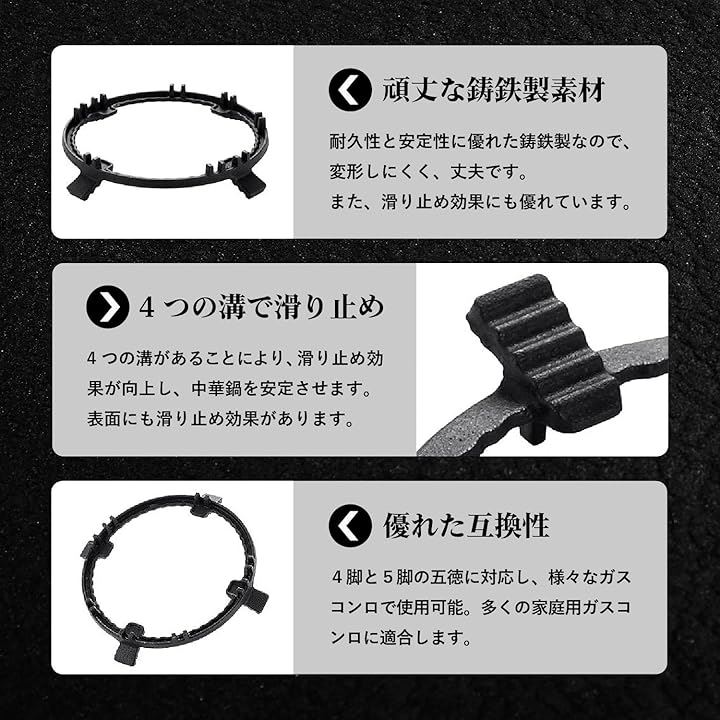 中華五徳 中華鍋専用 滑り止め 鉄 ミニ五徳 おしゃれ ガスコンロ用 五徳リング