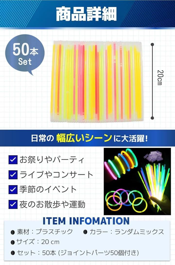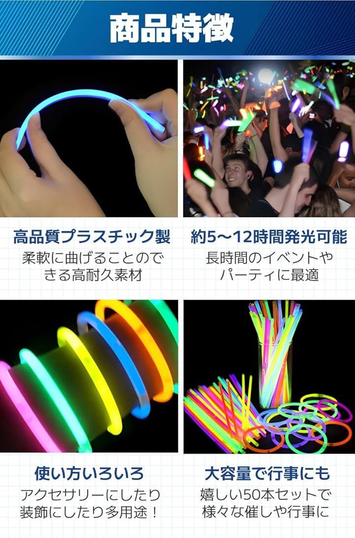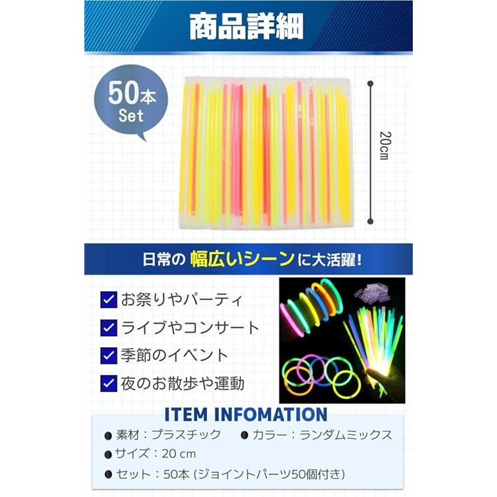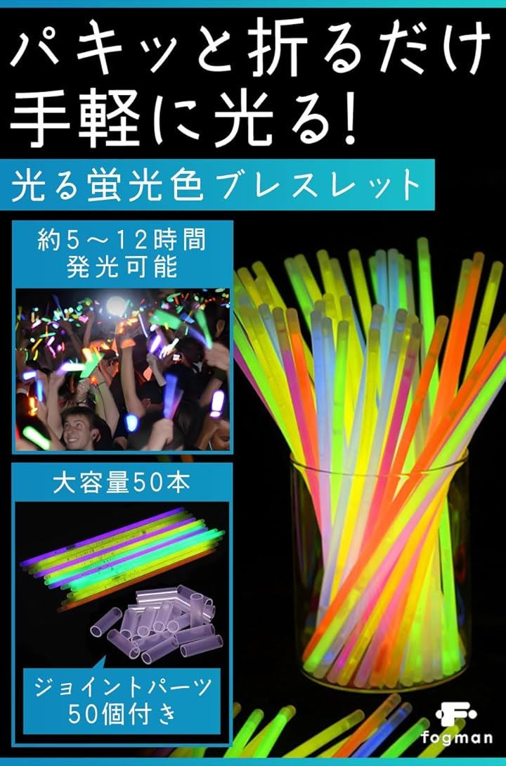 光るブレスレット ケミカルライト 夏祭り ライブ コンサート 縁日 蛍光 50本セット