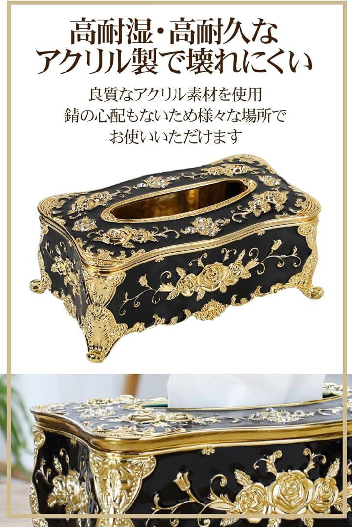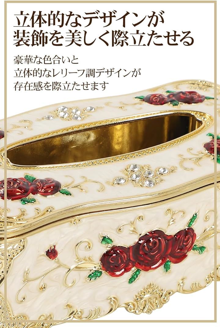 AllBright ティッシュケース 収納 おしゃれ ヨーロピアン 花 バラ 姫系