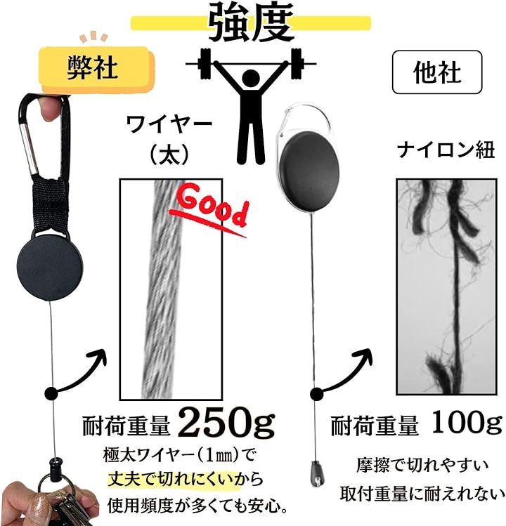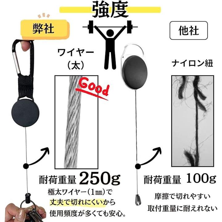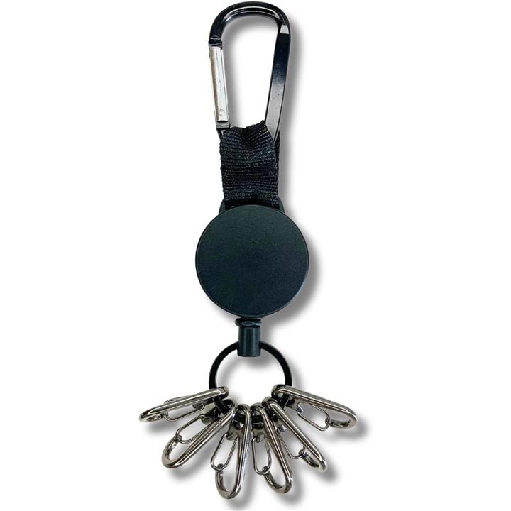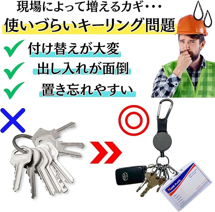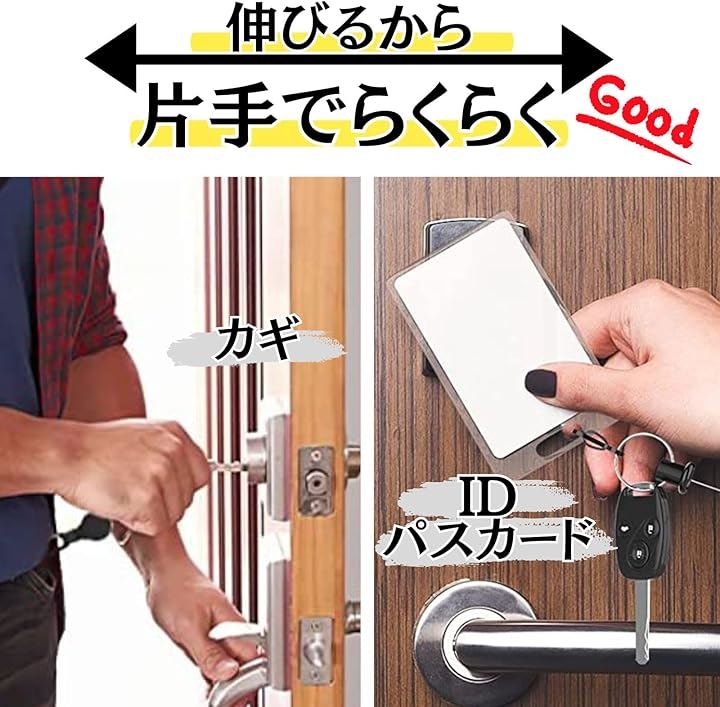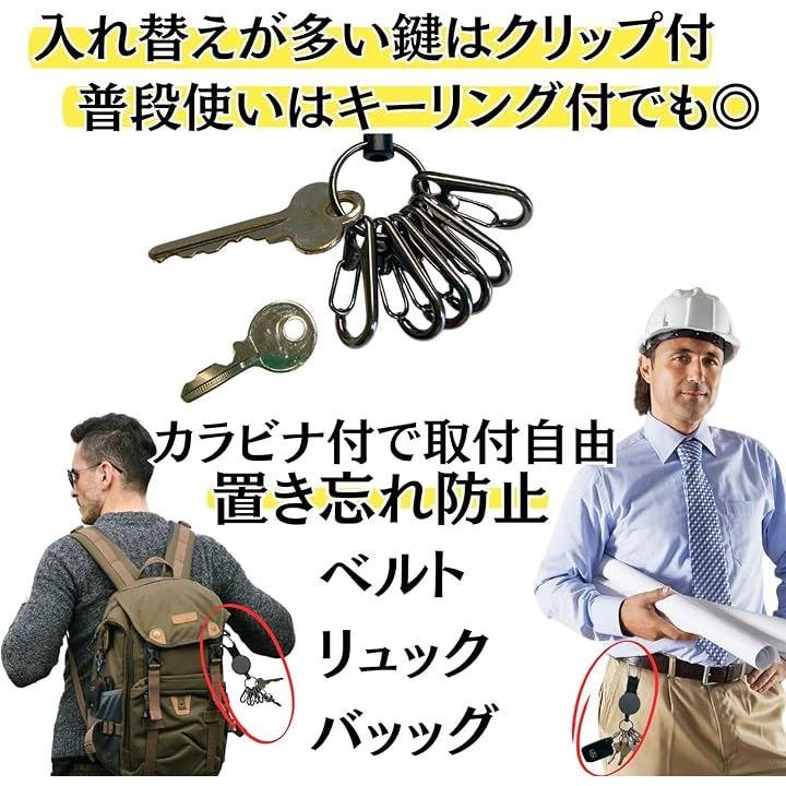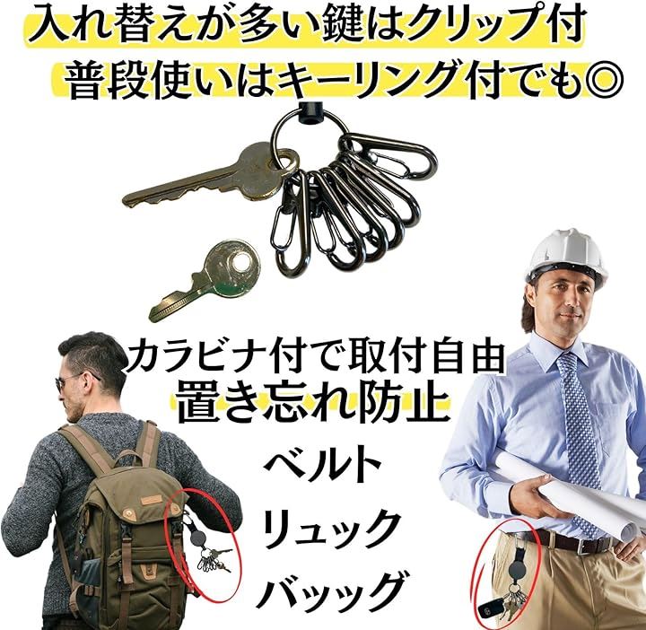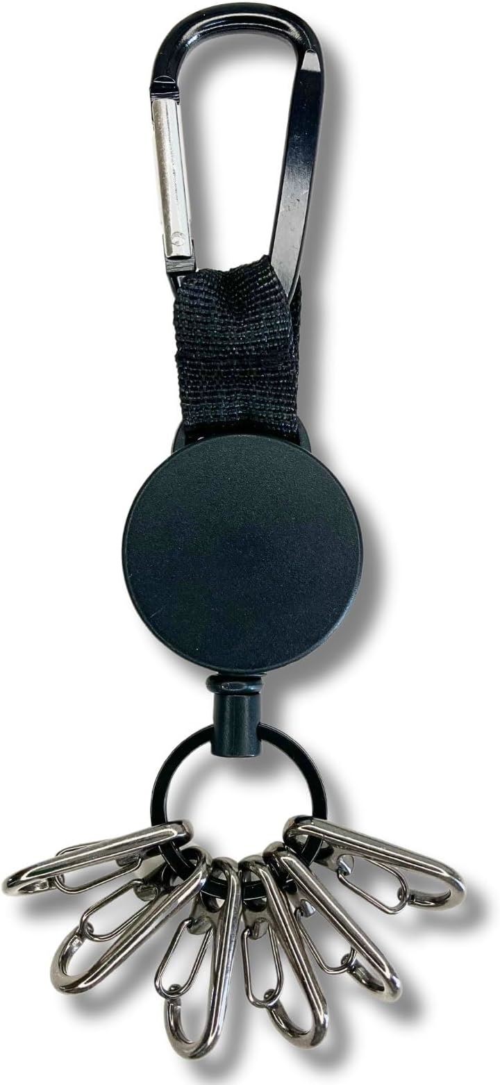 忙しい人のための片手でらくらく伸縮キーホルダー ワンタッチ6連クリップ付き 強いワイヤー 鍵 ID パスカード 頑丈 多用途 現場 作業 趣味 仕事 旅行 ゴルフ 釣り キャンプ 看護師 出先 出張 キーバック キーリール