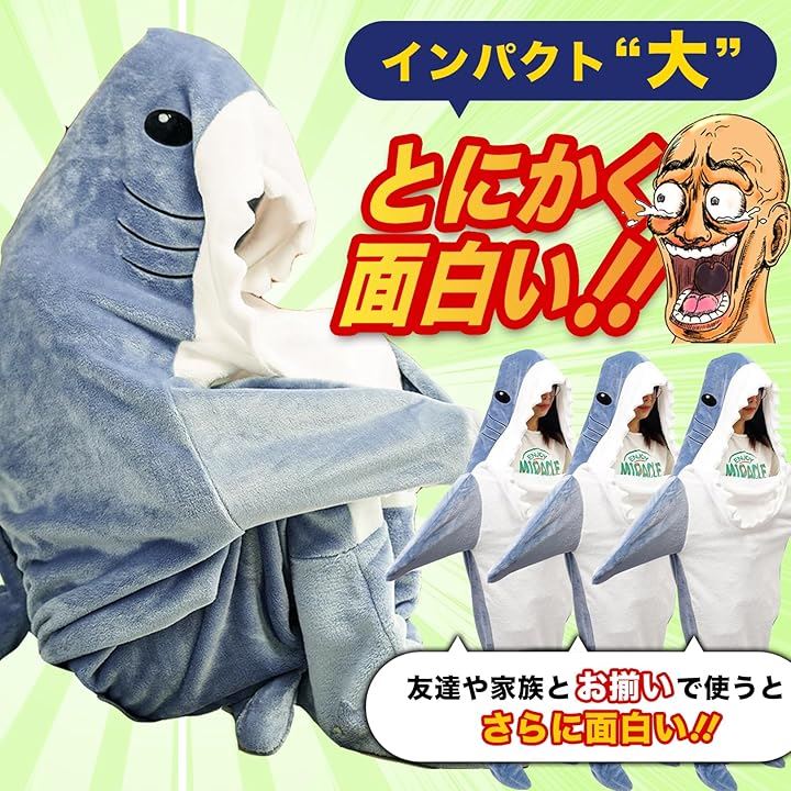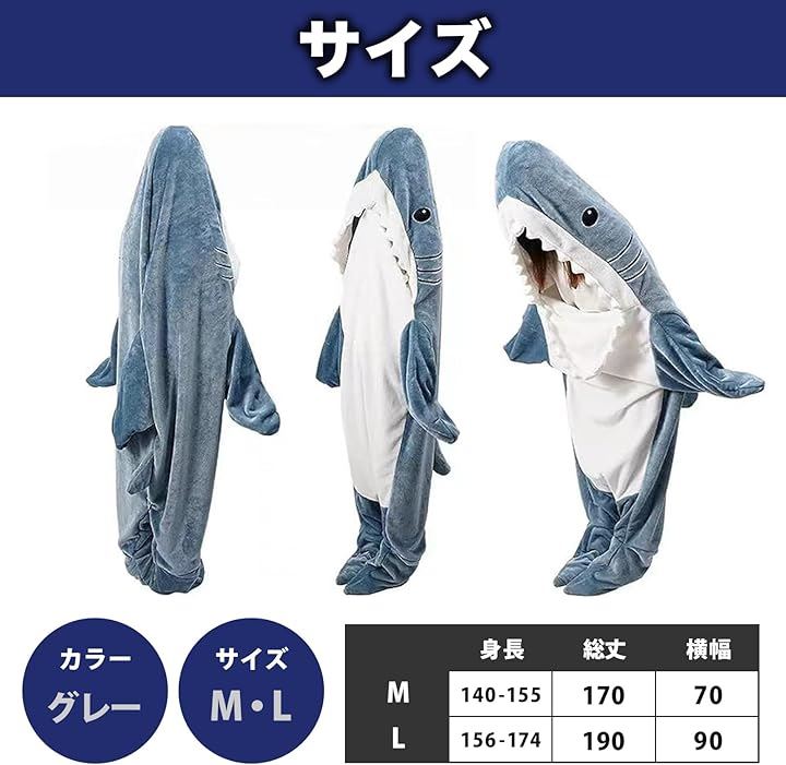 サメ 着ぐるみ パジャマ 寝袋 着る毛布 ブランケット 全身 コスチューム コスプレ