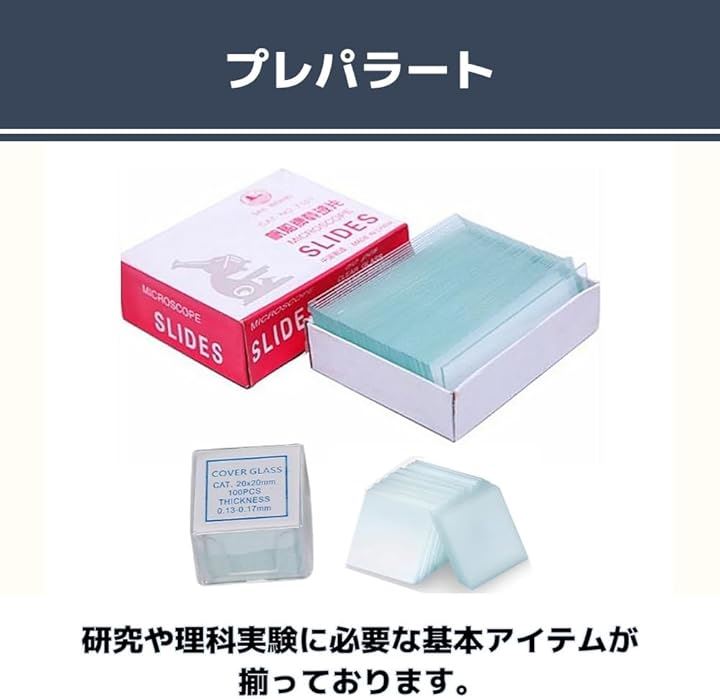 プレパラート 顕微鏡 観察 研究 理科 実験 カバーガラス 200枚 スライドガラス 100枚