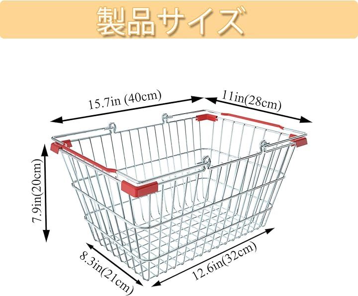 ワイヤーバスケット 大型ワイヤー収納バスケット 積み重ね可能 パントリー用 金属 ランドリーかご 野菜ラック キッチン用 ハンドル付き
