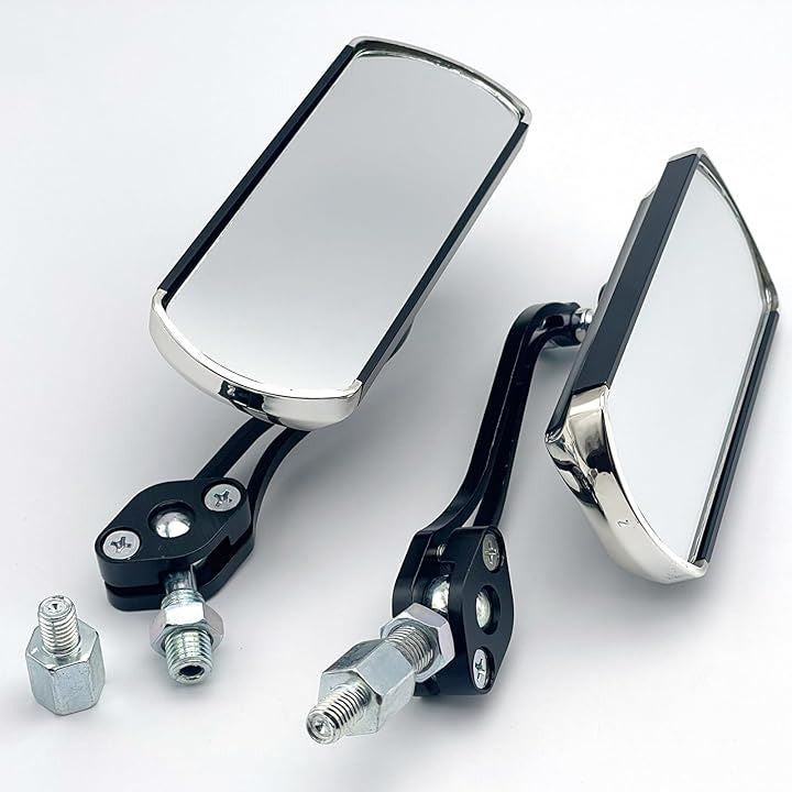 クラシック アルミ スクエア ミラー 汎用 10mm 8mm アダプター2個付き 360度回転 調整 ダックス ジョルノ カブ PCX CBR Z125 GSX MSX KLX