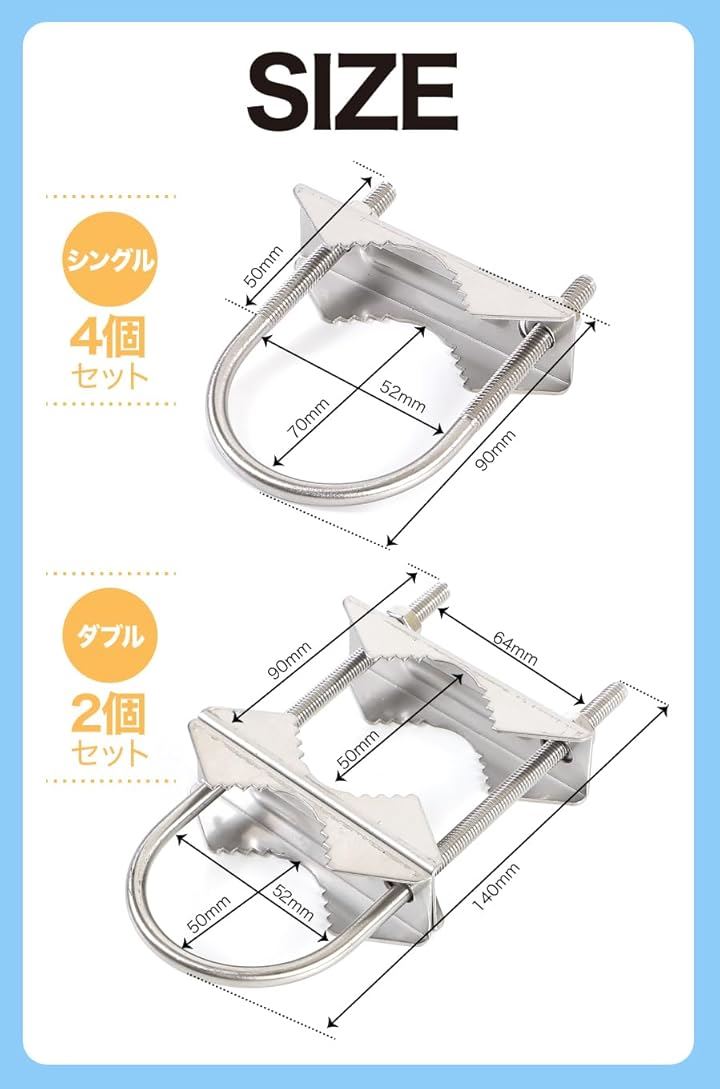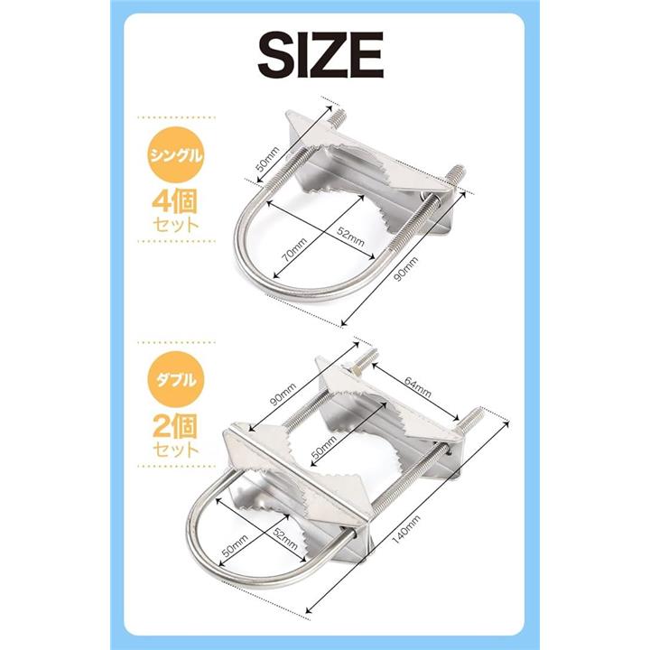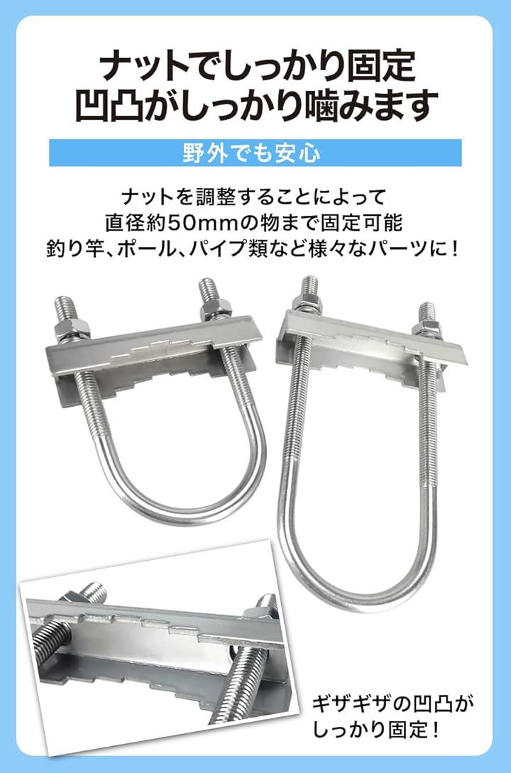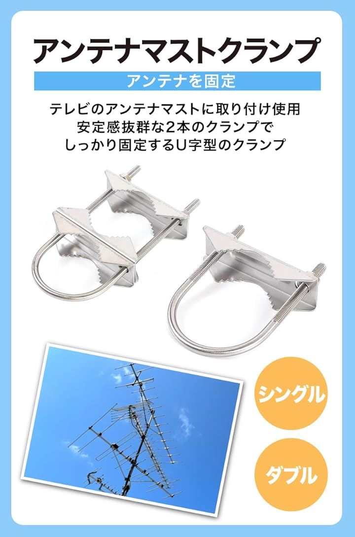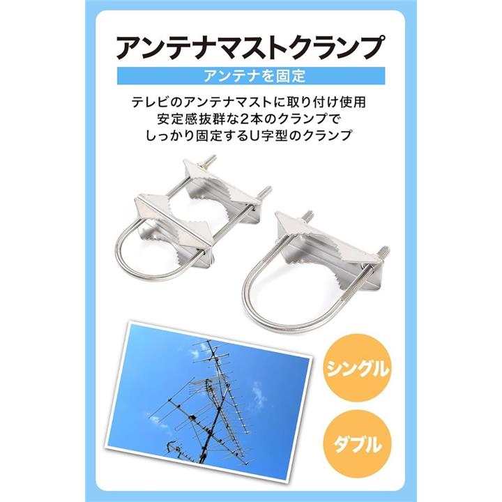 AllBright アンテナマストクランプ Vジョーブラケット 取り付け金具 固定 Uボルト 2個セット
