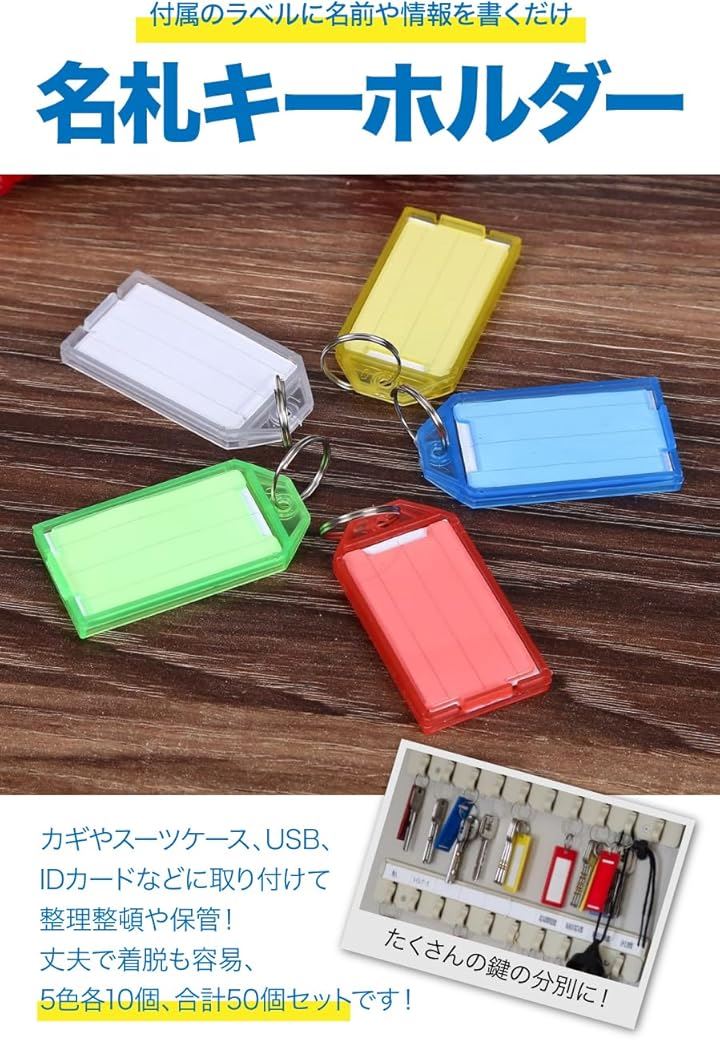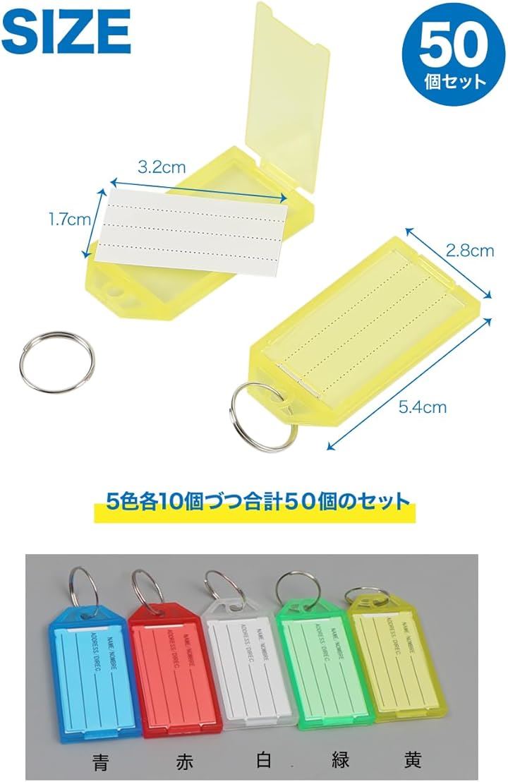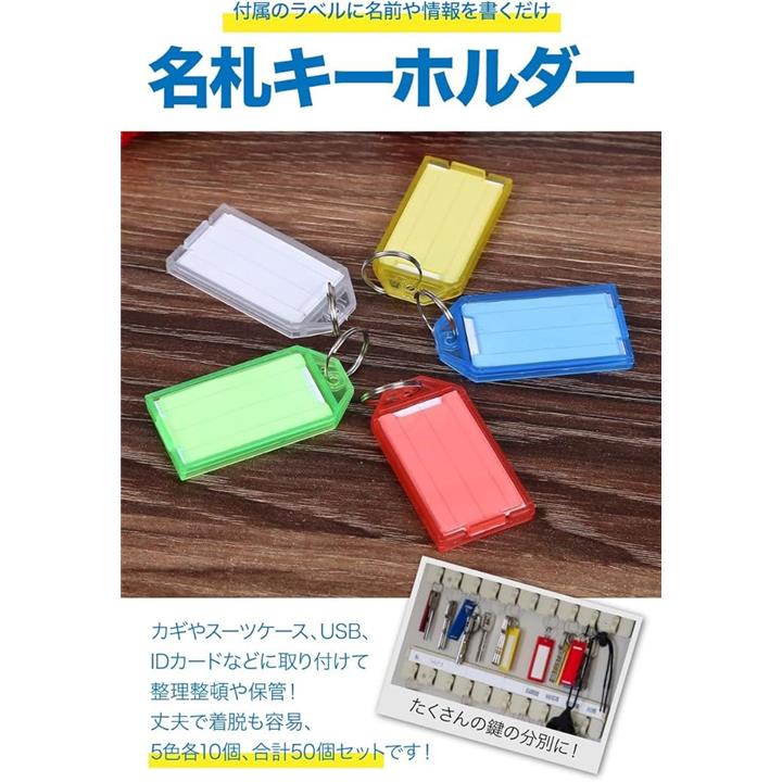 AllBright ネームタグ キーホルダー名札 ネームタグクリップホルダー プレート 鍵 小物 50個セット