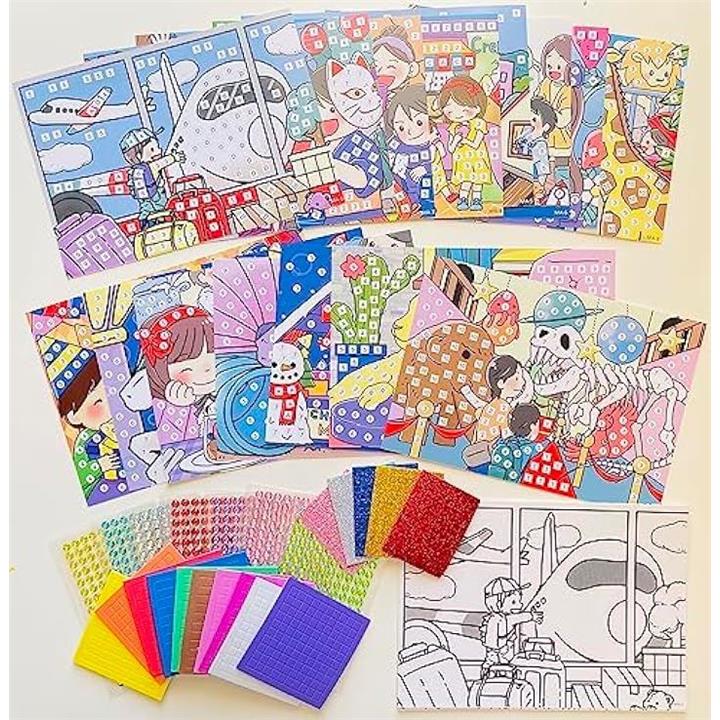 知育モザイクシール貼り & ぬり絵 15種類セット キューブシール ドゥエガッティーニ
