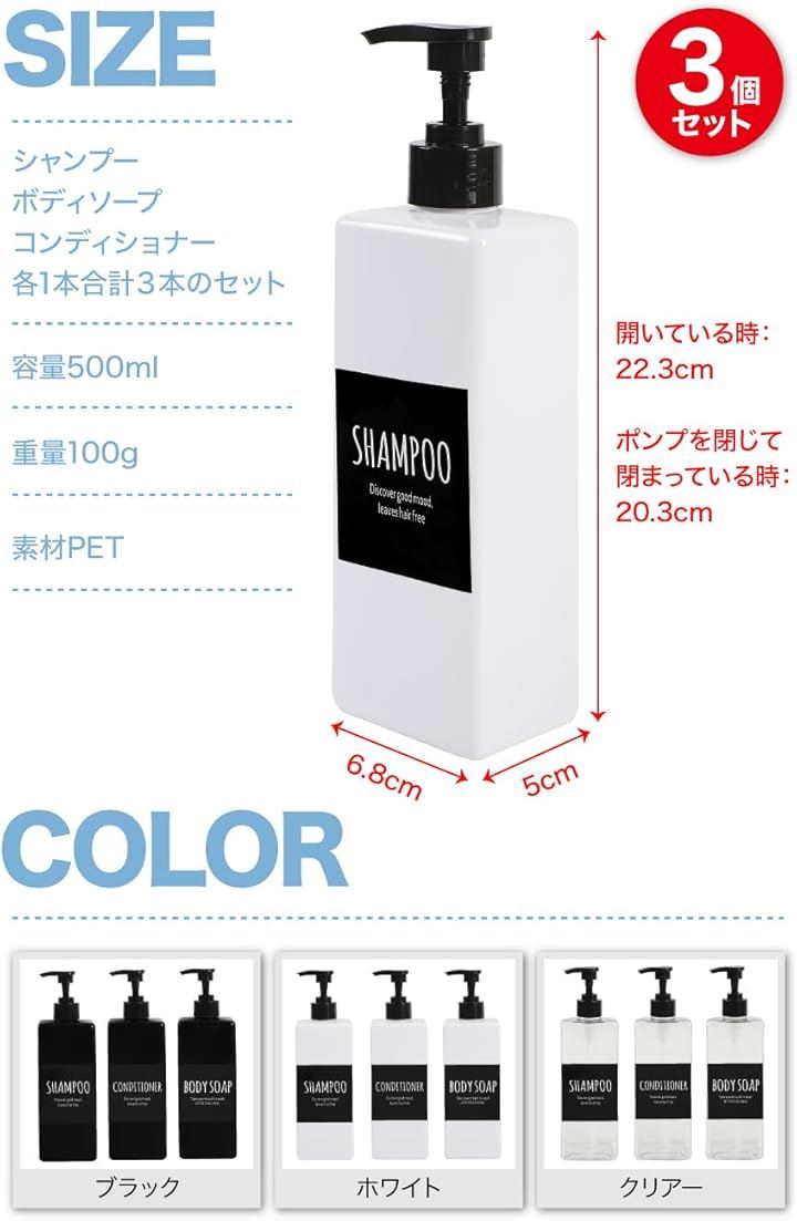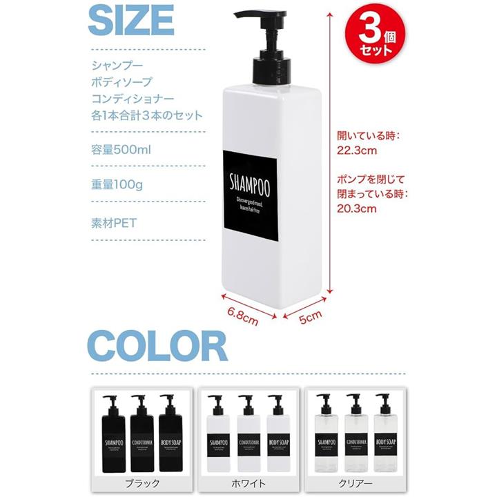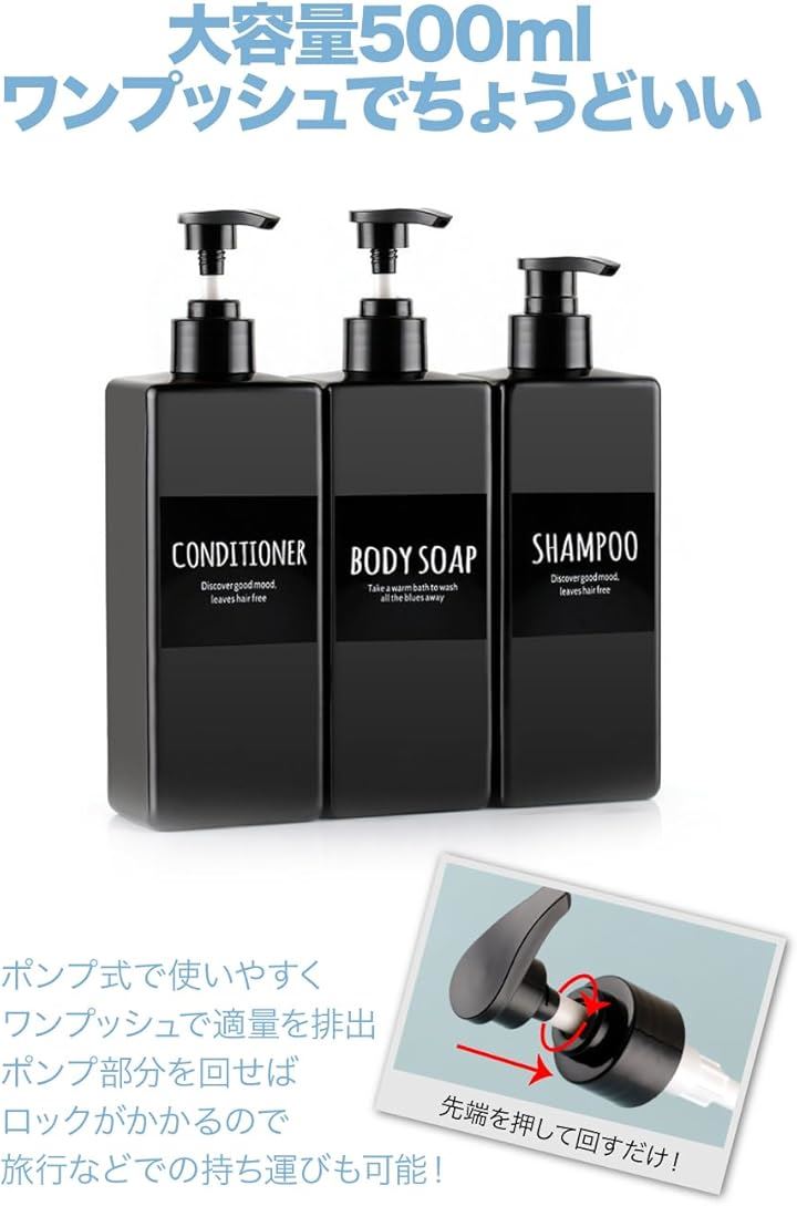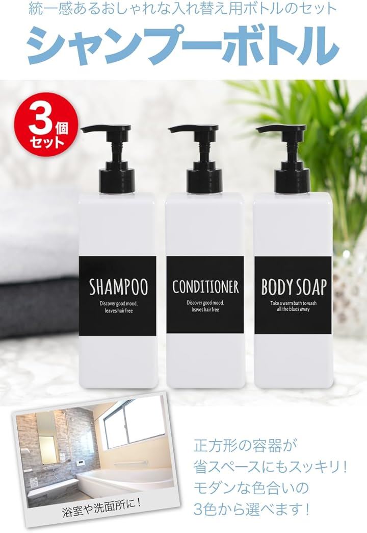AllBright シャンプーボトル ディスペンサー 容器 コンディショナー 詰替え ホテル 病院 オシャレ 3本セット