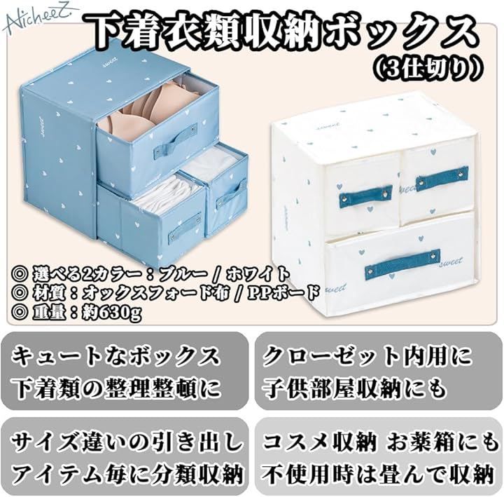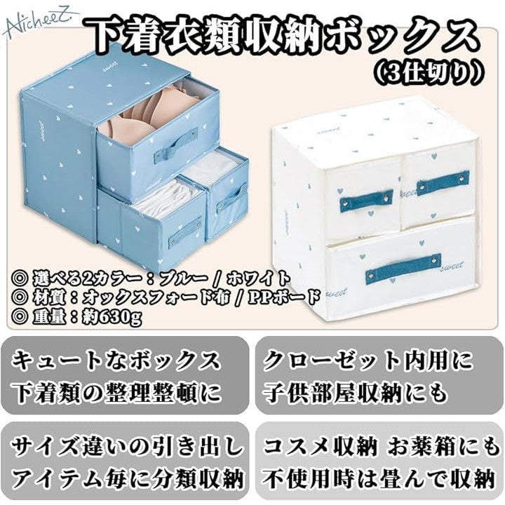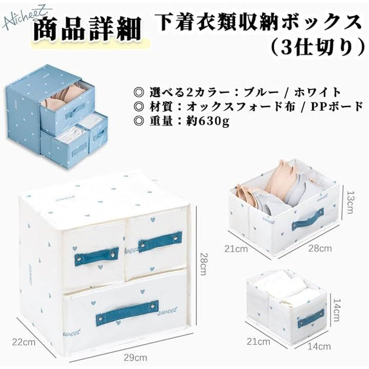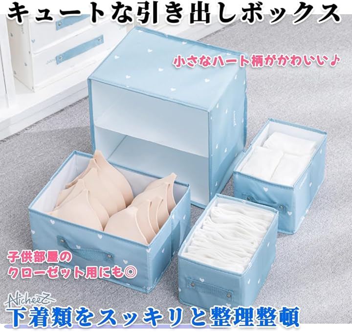 下着 衣類 収納 ボックス 折りたたみ フタ 引き出し 取手 仕切り 付 ケース クローゼット内