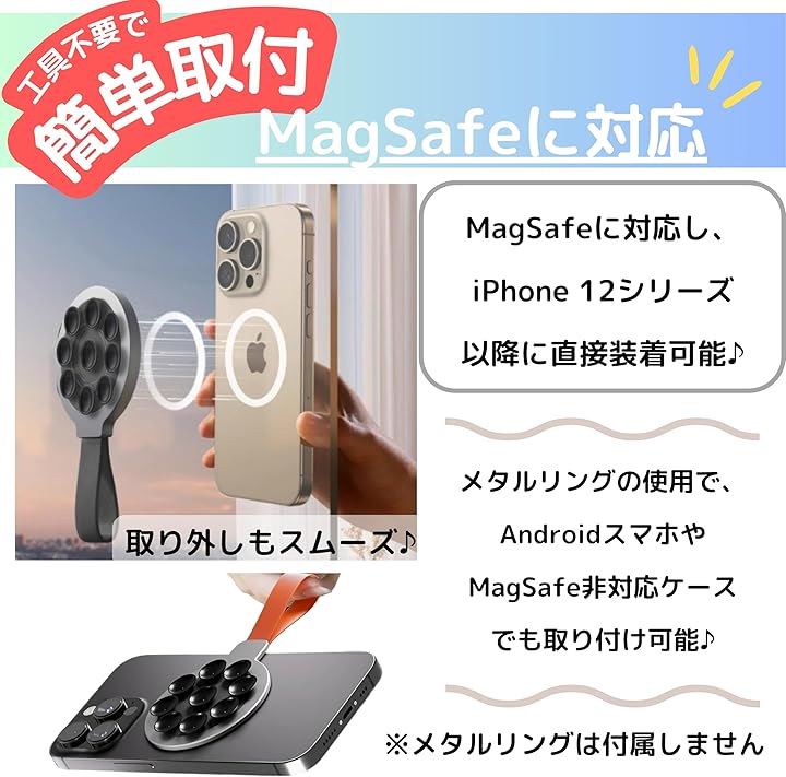 スマホスタンド スマホホルダー 携帯電話ホルダー 吸盤式 マグネット MagSafe対応 iPhone Android
