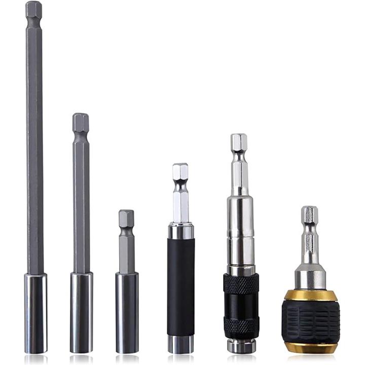 マグネットビットホルダー 6本入り 磁気ビットホルダー 六角軸 延長ビット インパクト 首振りショートソケット 首振り角度0-20° キーレス ドリルチャック