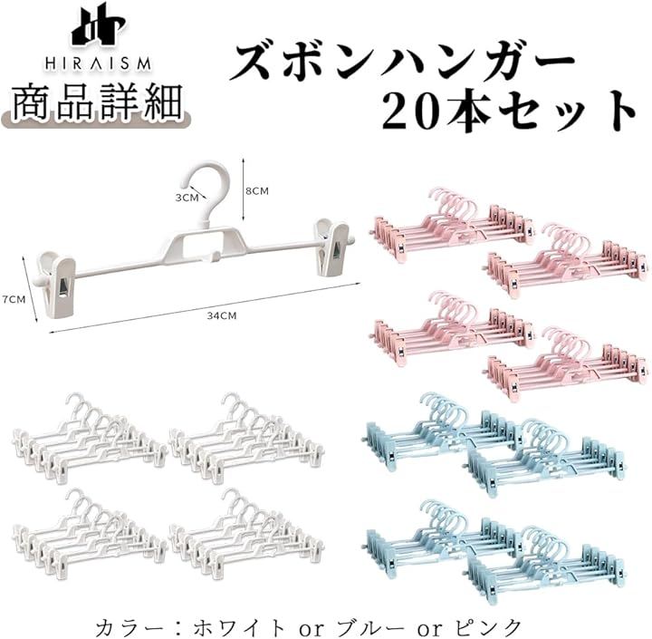 ズボンハンガー スカートハンガー クリップ 落ちない 360度回転 省スペース 20本セット