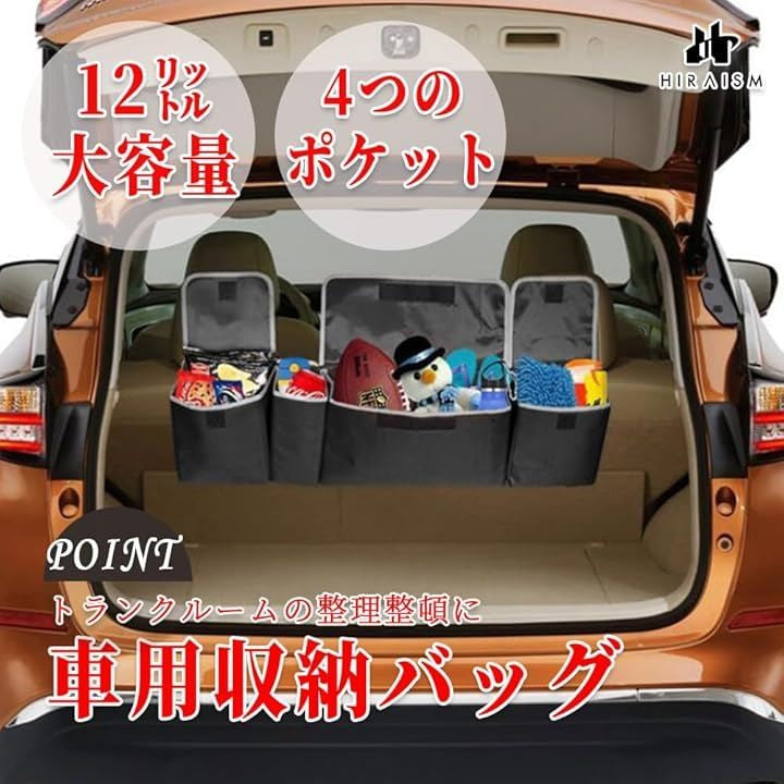 車用 トランク 収納バッグ 折りたたみ式 4ポケット