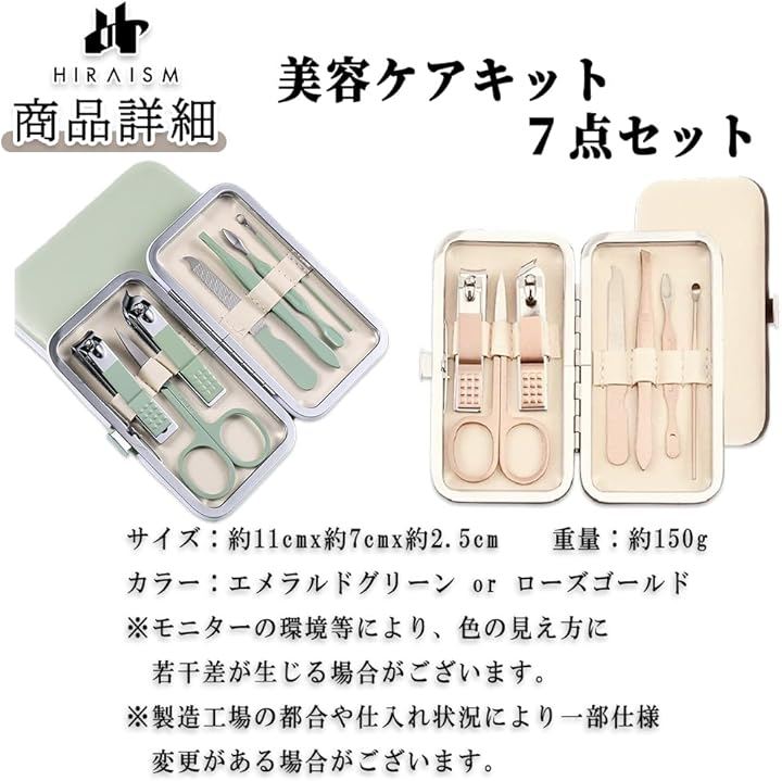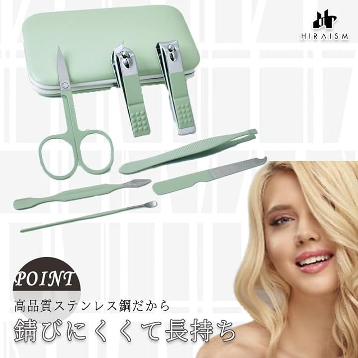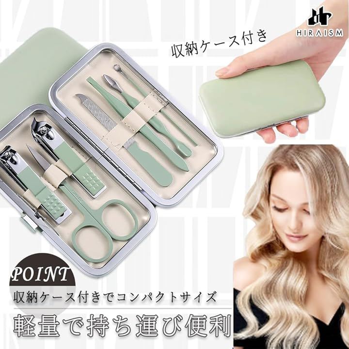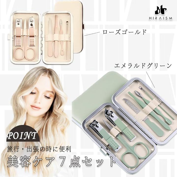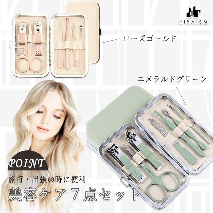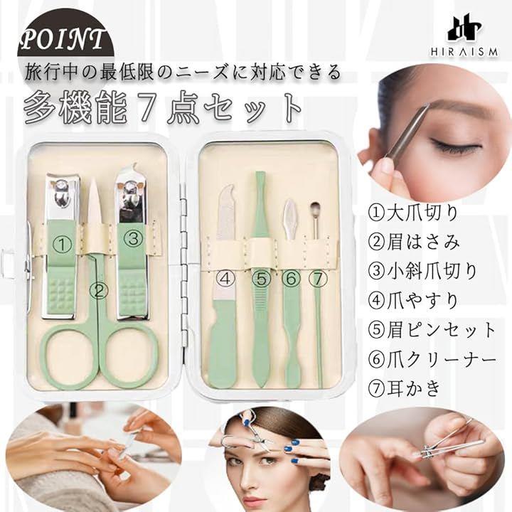 ネイルケアセット 7点 携帯用 爪切り はさみ 耳かき やすり ケース付 ステンレス製 男女兼用 旅行 出張 ギフト