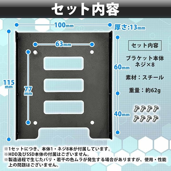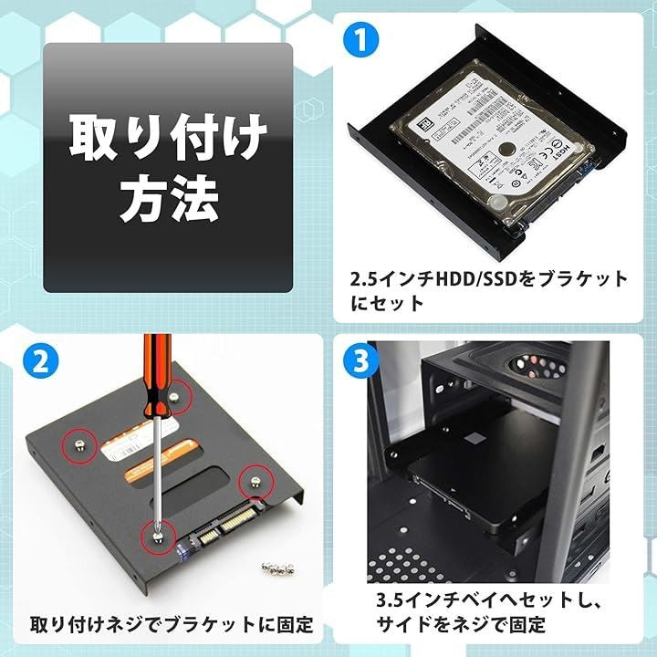 2.5インチHDD/SSD用 3.5インチ変換マウンタ ブラケット PC用 ネジ付き 金属製 変換ケース