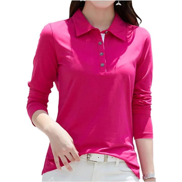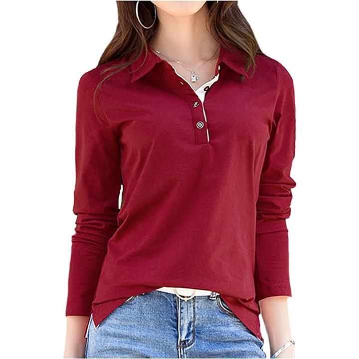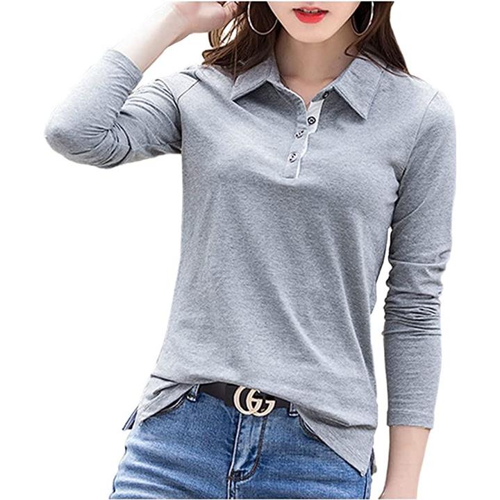 [スリージョイ] ポロシャツ 長袖 トップス 襟付き スリム カジュアル ボタン シャツ レディース |