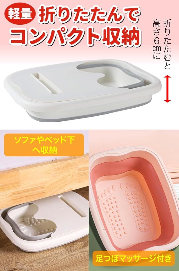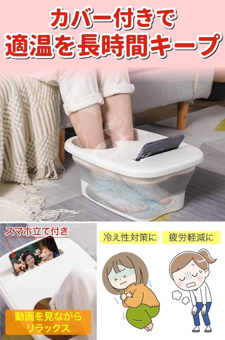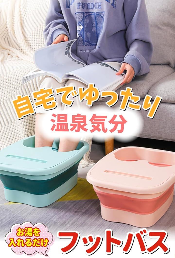 フットバス 足湯器 桶 バケツ リラックス 足つぼ 折り畳み 蓋付き コンパクト