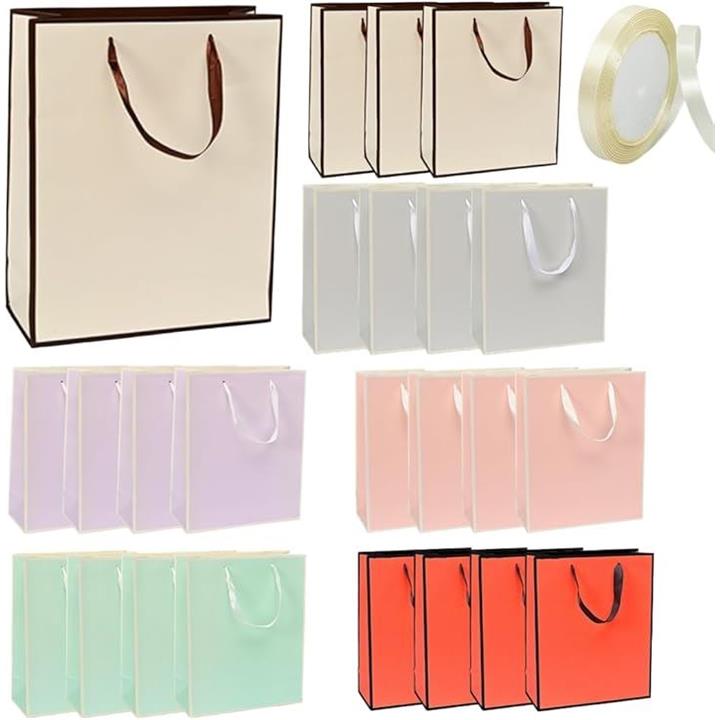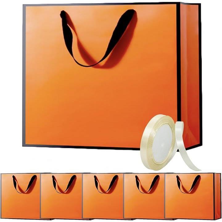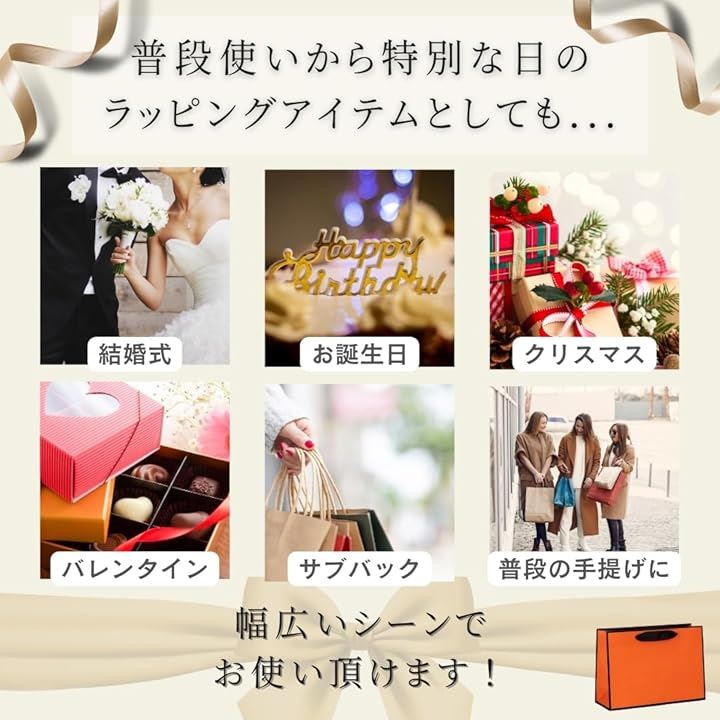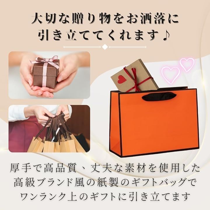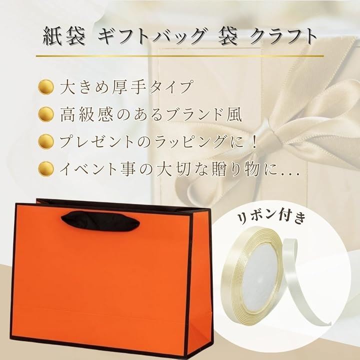 紙袋 ギフトバッグ クラフト ブランド風 大きめ 厚手タイプ 丈夫 ラッピング プレゼント 結婚式 誕生日 クリスマス リボン付き