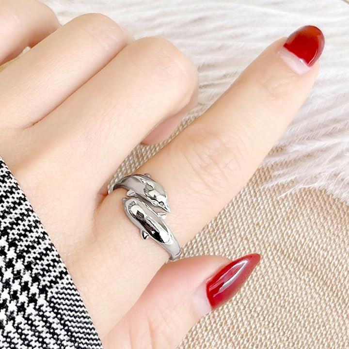 イルカ リング ドルフィンリング シルバー 指輪 調節可能 ジュエリー フリーサイズ オープンリング