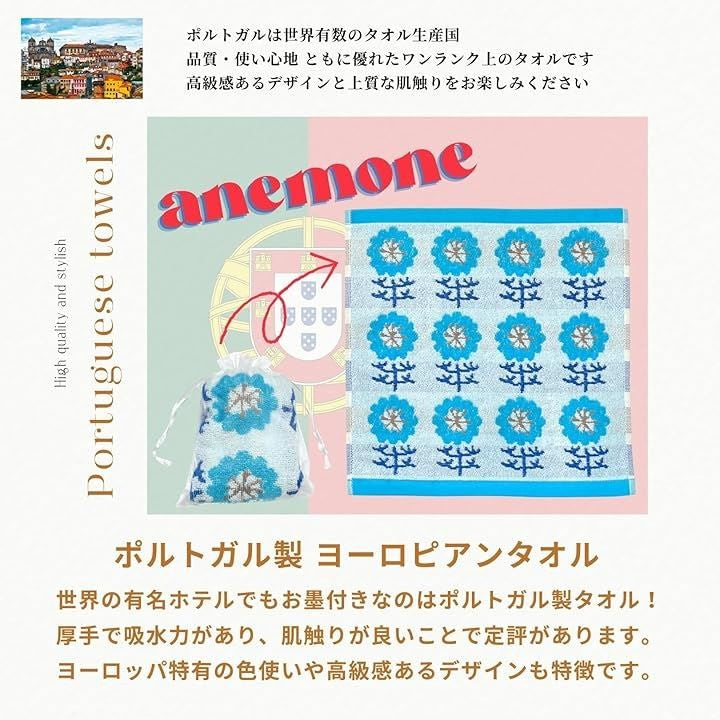 ギフト 厚手 ハンカチ タオル 34x35cm プチギフト プレゼント メッセージカード ラッピング箱付き 綿100% 結婚式 誕生日 お土産 退職 MSW2466アネモネ