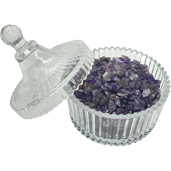 水晶 さざれ石 浄化用 ガラス皿 パワーストーン 蓋つき ビーズさざれチップ付 玄関 インテリア 浄化皿 置物 風水
